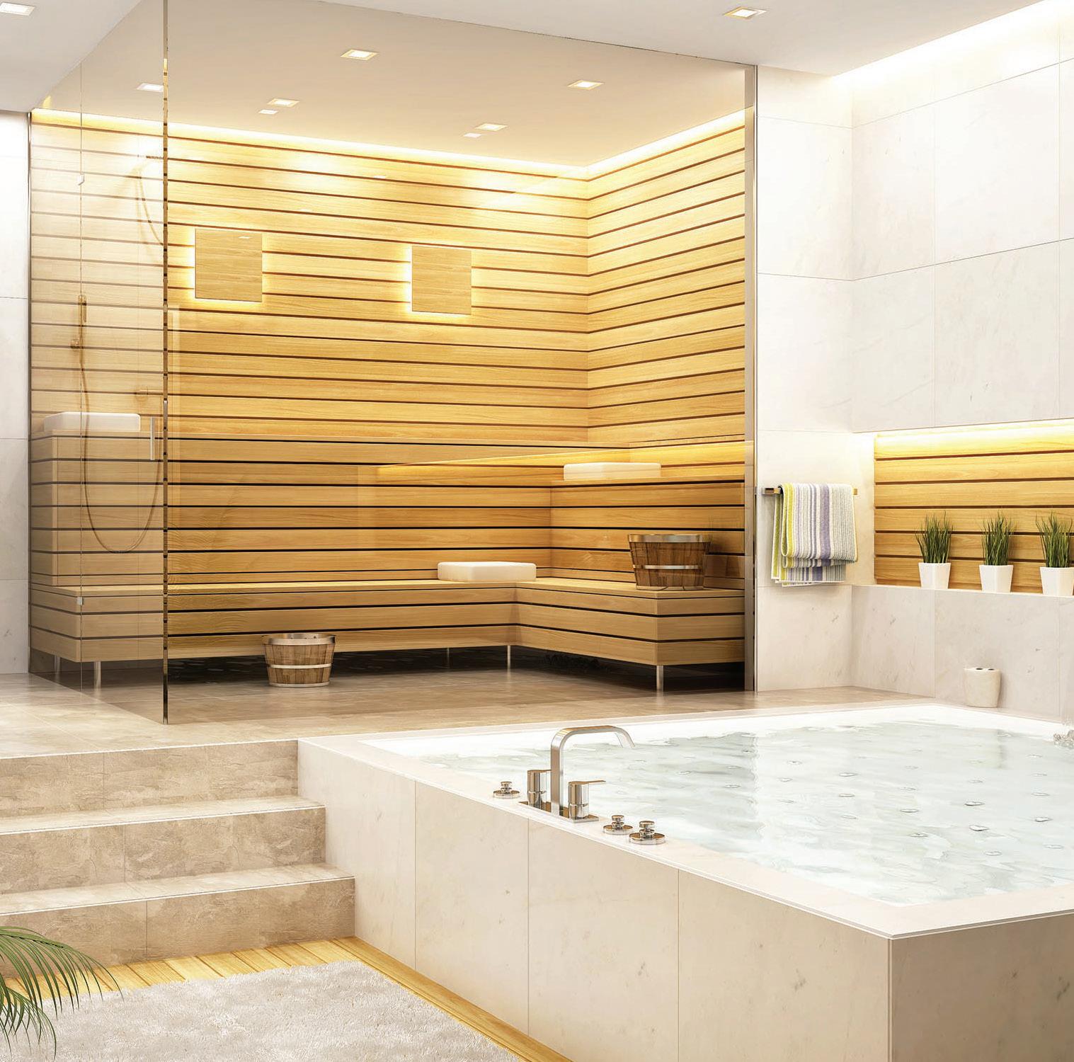Similar to a sauna, but where a sauna is usually dry, a steam room gets it heat from the humidity achieved using a generator that pumps steam into the room. Steam rooms are typically only heated to around 43°C, but operate at around 100% humidity levels.