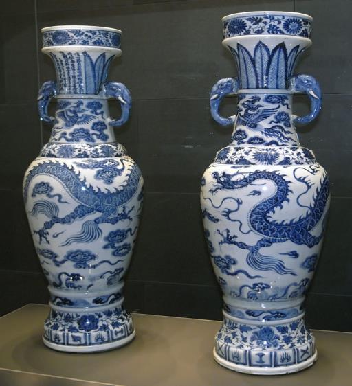 Jarrones Ming de cerámica, elaborados entre los siglos XIV y XVII.