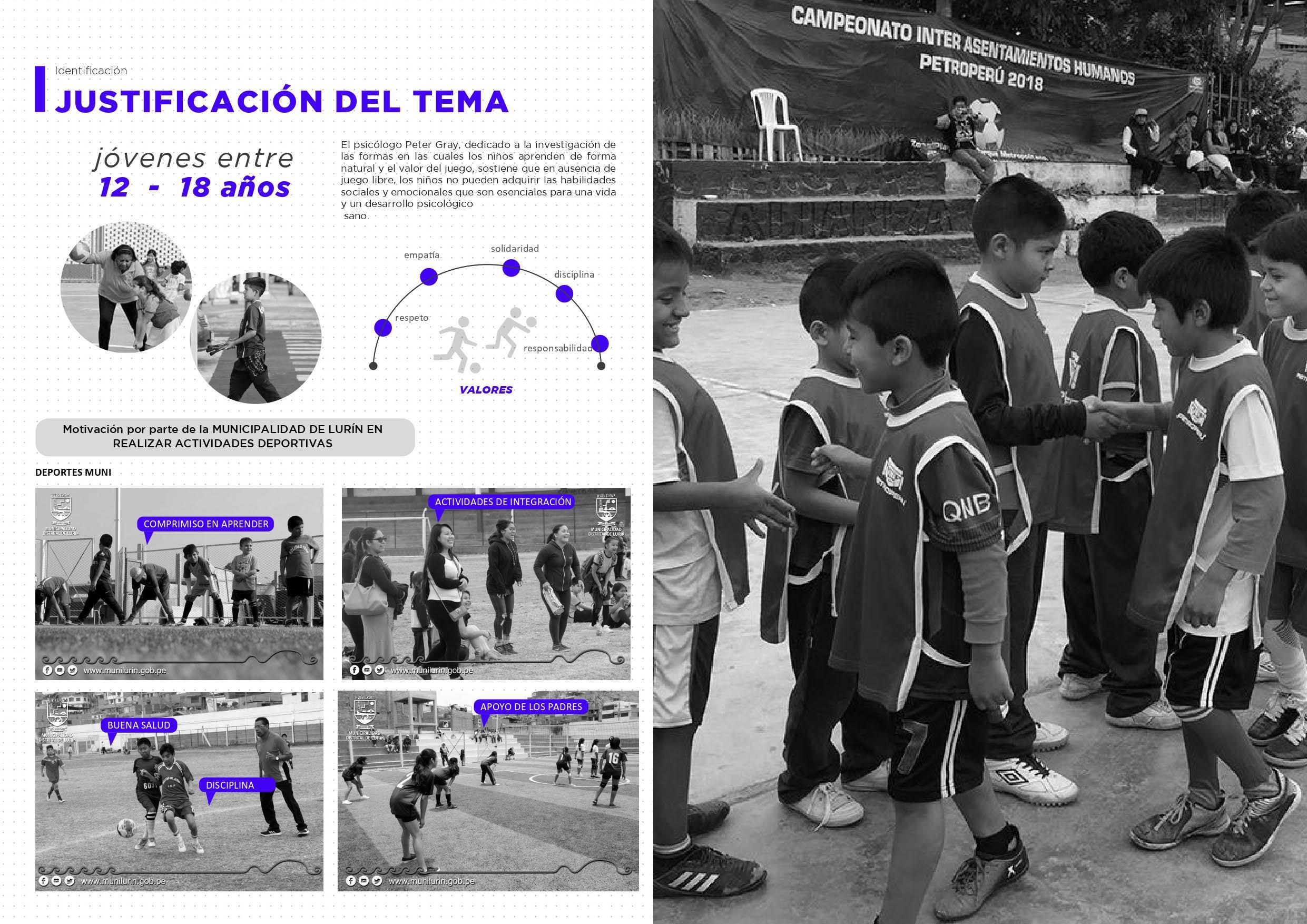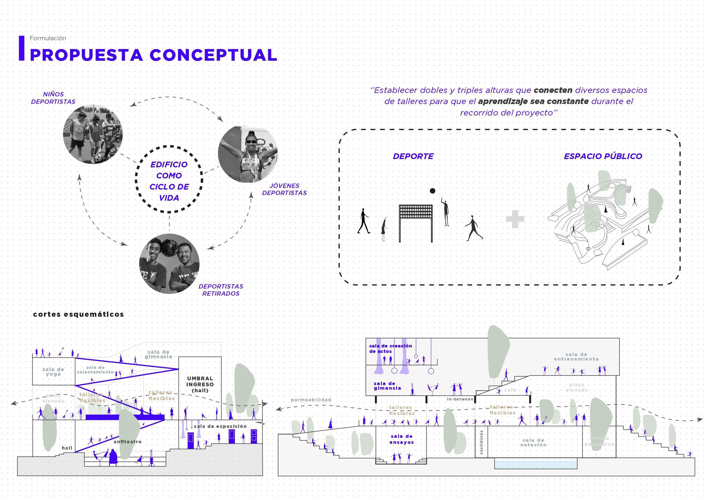 El enfoque escogido, para el desarrollo del proyecto, fue para jóvenes entre los 12 y 18 años. Se justificó la elección del tema considerando la necesidad de nuevas infraestructuras deportivas para generar una identidad hacia el deporte y la manera en la que este logra un impacto positivo en nuestros usuarios. Asimismo, se analizaron las problemáticas que nuestros usuarios afrontan y que les impide desarrollar actividad física.