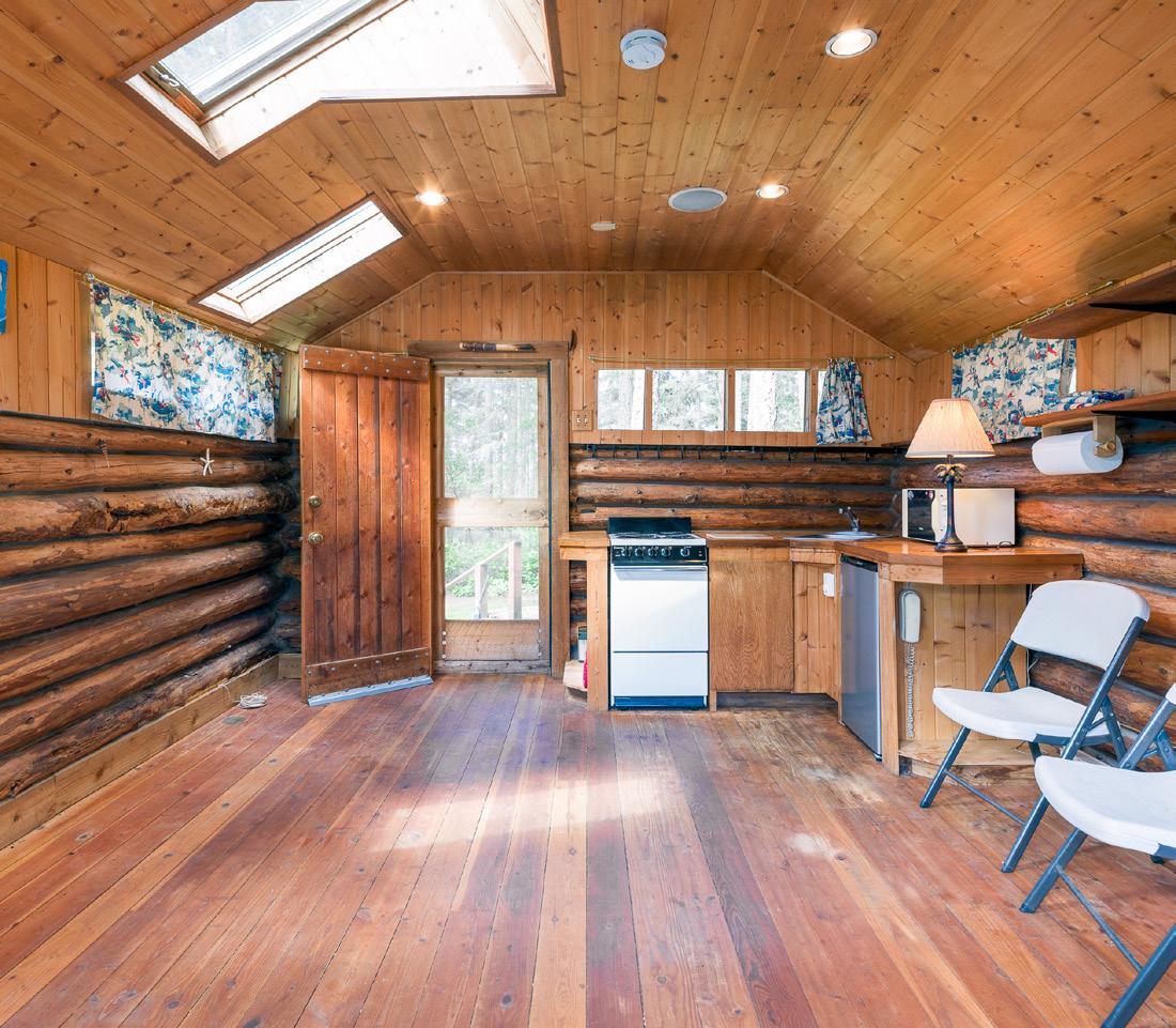 This 1978 one-room log cabin, nestled among the trees and salal, is perfect for camping. With a little elbow grease and TLC you can bring this woodsy abode, complete with skylights, back to life. The vintage cabin features a small kitchenette with operational electric stove, a detached shower house and cute outhouse with Campco potty. Water catchment is in need of repair. Sold as is. No CCRs/HOA. #2055574
