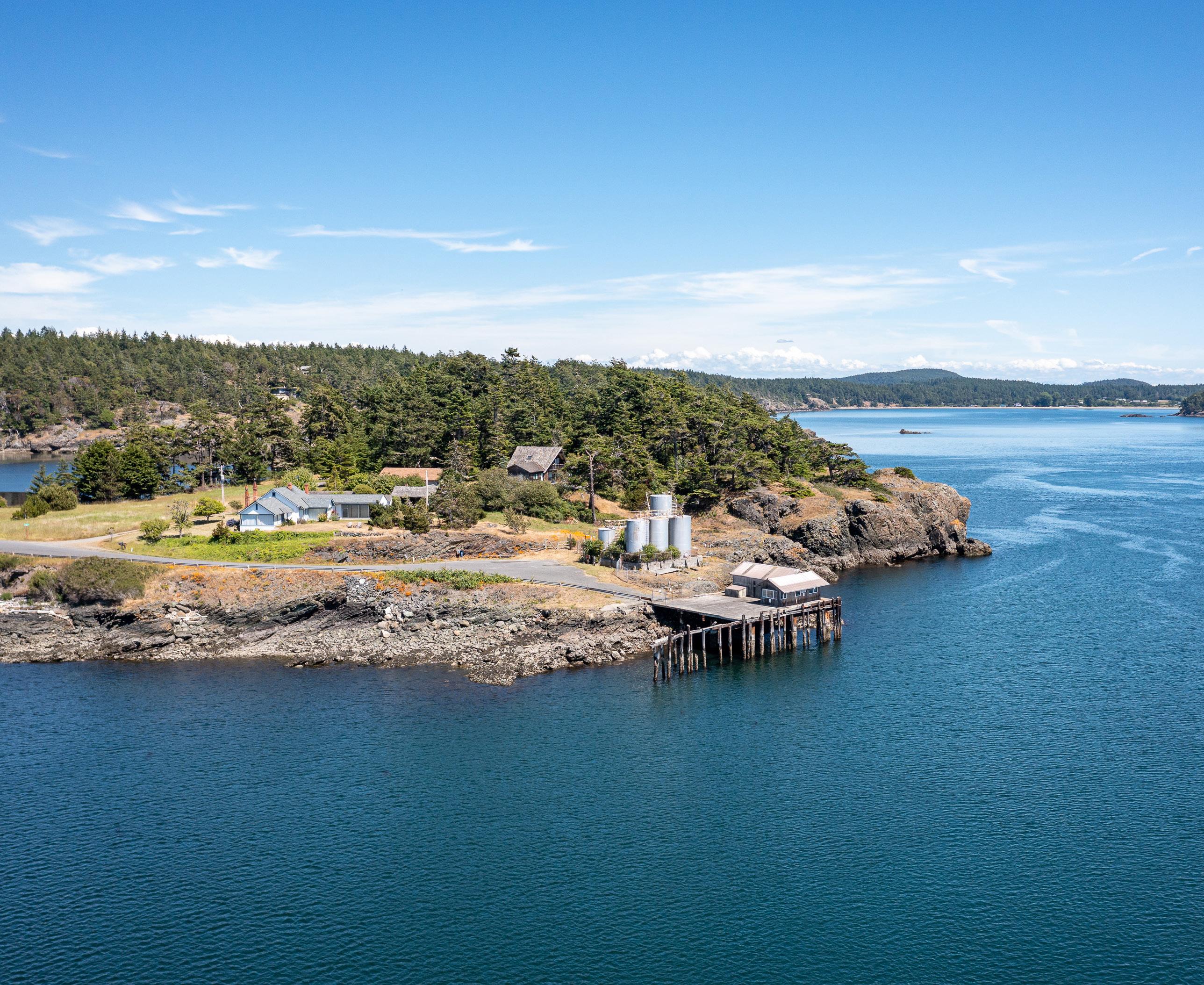 Today, Richardson is still a prominent point on SW Lopez. Rich in history and open vistas, this very special property with 507’ of WF is sited on two tax parcels. One of the last deep-water ports on Lopez Island, there is a state marine lease in place. An office/ storage building is located on the pier. There’s a share in the community water system. Open, southern exposure and aweinspiring views. Bring your imagination and own a bit of history. #2033444