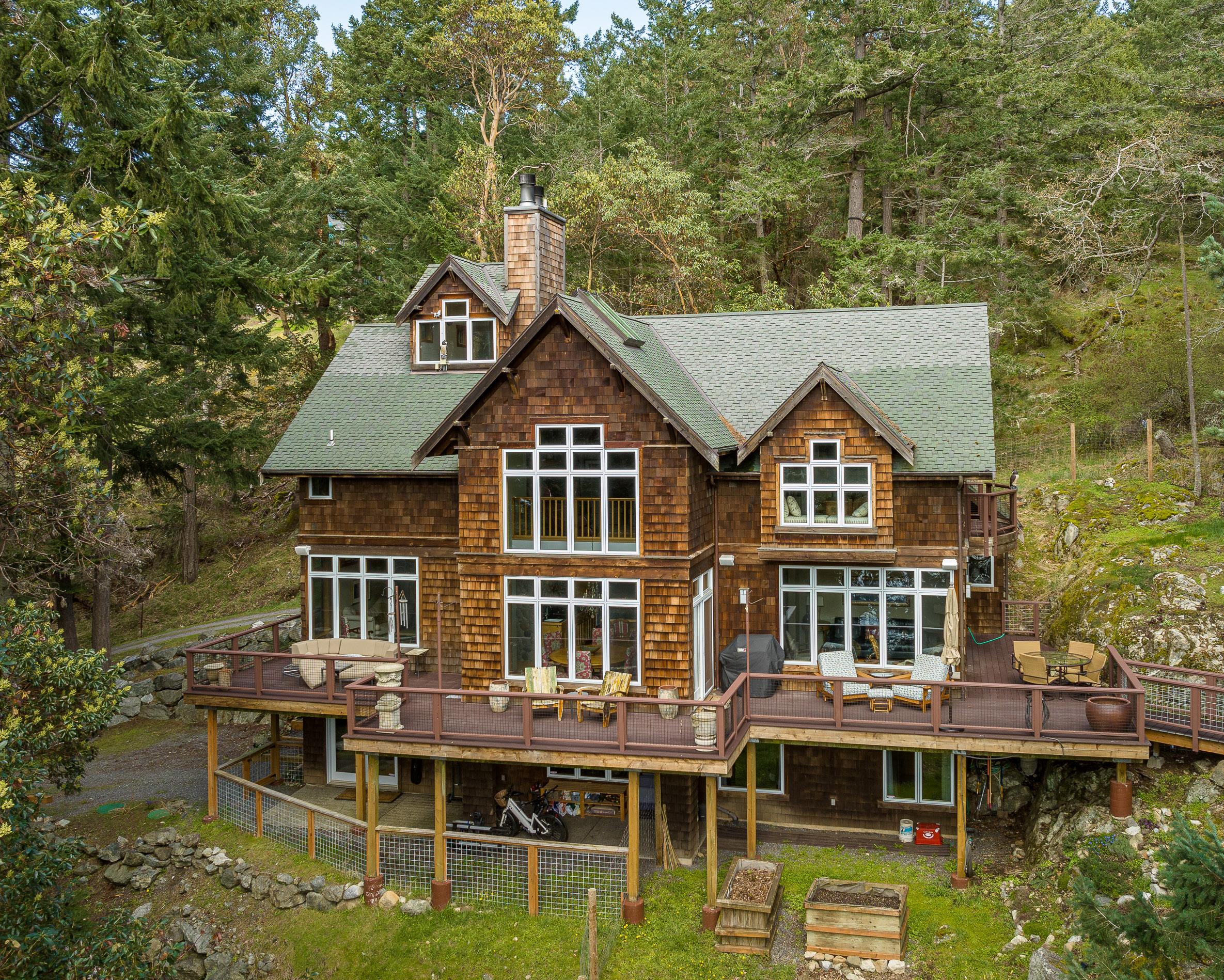 Seattle architect, David Vandervort design and built by Burke Thomas, completed in 2020/2021. This stunning 4 bedroom, 3.5 bath elegant home, is situated on 7.93 park-like acres. Expansive lawn flows into low-bank, protected cove beach. Main level great room w/floor to ceiling windows and custom stone, wood-burning fireplace. Chef's kitchen w/high-end finishes and ample prep space flows seamlessly w/great room, providing a distinctive entertaining space. Formal dining room and den located off kitchen. Primary bedroom and ensuite on main floor. A rift and quarter sawn White Oak engineered hardwood. 3 additional bedrooms and 2 baths, and spacious game/bonus room upstairs. Finished 700 sf attached garage. 2-bedroom, 1 bath bunkhouse and fully finished Boat Barn. Private well, newer 6 BD septic, fiber, and mooring buoy. An idyllic island sanctuary. #2049449