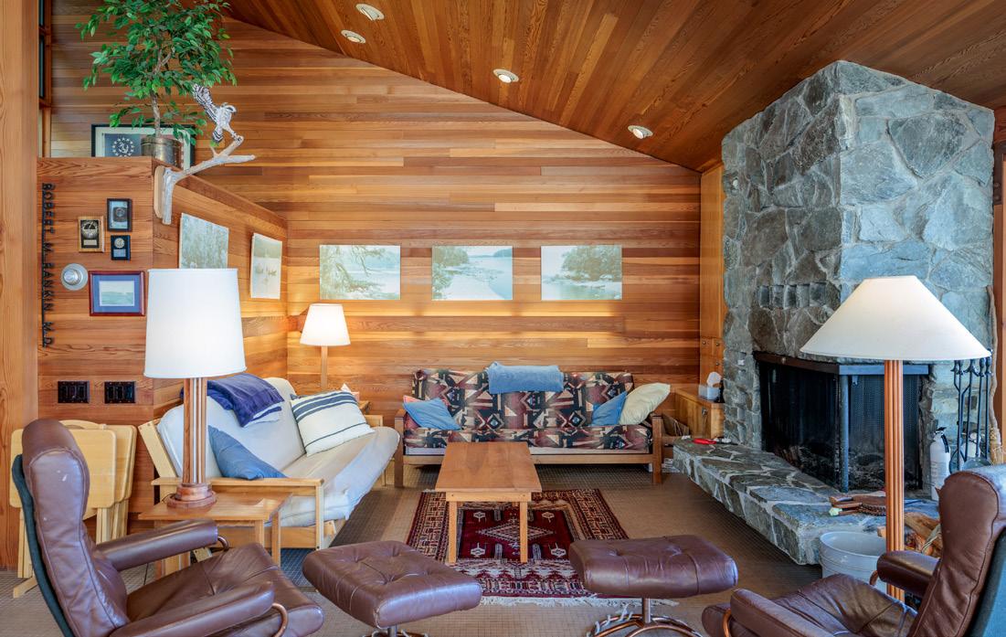 Set on a 2 AC rocky point, tucked away on southend Lopez, is a carefully sited 3 BD/2 BA home capturing panoramic water and mtn views. The custom home, with hickory floors, a riverstone fireplace and high-end appliances promises a private sanctuary for the nature lover. Many windows frame the view from the remodeled primary suite w/ deck access. Outdoors there’s a bluestone patio, epic fire pit on the point and detached garage. Gated, deer fenced, 2 car garage, stairs to cove beach, mooring buoy and boat winch. #2053940