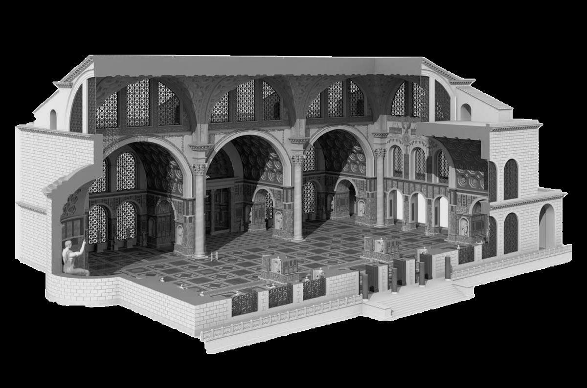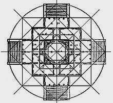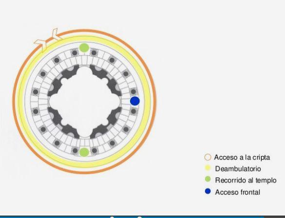 superpuestos.cúpulalacentralaCadaunadelascuatroentradasconduce,travésdeunpasillocorto,alsalóncircular,cuyodiámetroequivaleaanchuradelpórtico,cubiertoporunarealizadaabaseanillos