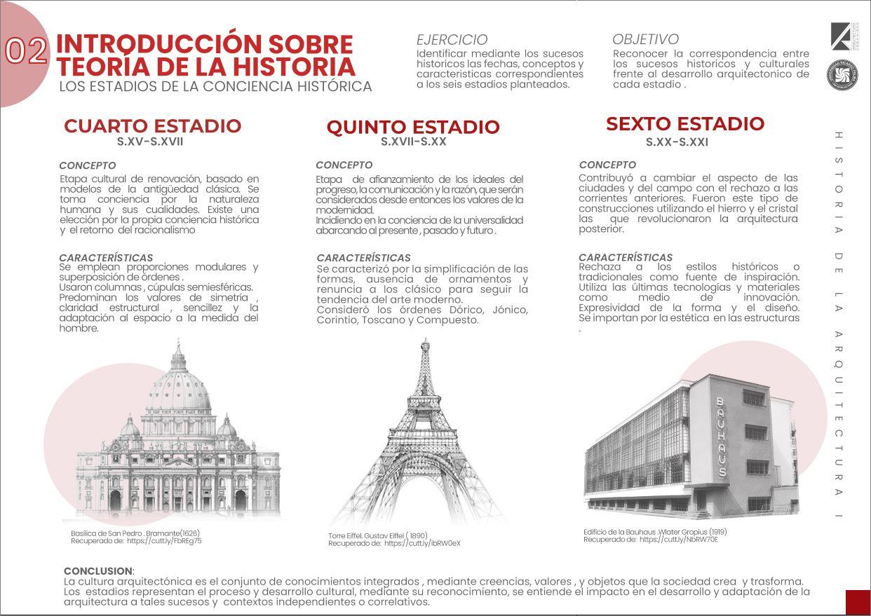UNIDADI LACIENCIADELAHISTORIAYLATEORÍAARQUITECTÓNICA LOGRODEAPRENDIZAJE:Alfinalizarlaunidadelestudianteanalizarálosperíodoshistóricos,laevolucióndelasculturasylosestadios arquitectónicos, mostrando inteligencia espacial y compromiso contextual, relevando los valores éticos y estéticos de la ciencia de la historia y la teoría de la arquitectura, que propicie como resultado el conocimiento científico y el desarrollo académico con orden y coherencia. 01 02 03 04 Mapamental: ● Problemáticaen ValleLurín INTRODUCCIÓNSOBRELATEORÍADELAHISTORIA Entenderlaarquitectura: “Deleite”.Verla Estadiosarquitecturadelaconciencia histórica PREHISTORIAYALTAS CULTURASPRIMARIAS Historiade humanidad,hombrelade enLíneaNeanderthaldetiempo:culturaslaantigüedad HISTORIA URBANA DE LAS ALTAS CULTURAS PRIMARIAS Infografía: ● Las altas culturas primarias. TEORÍADELCONOCIMIENTOARQUITECTÓNICO