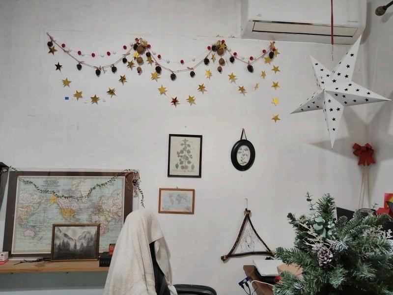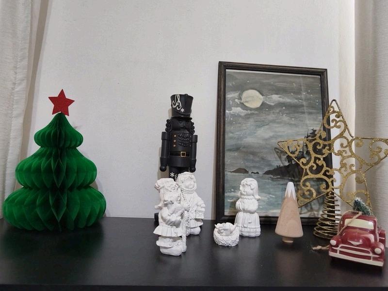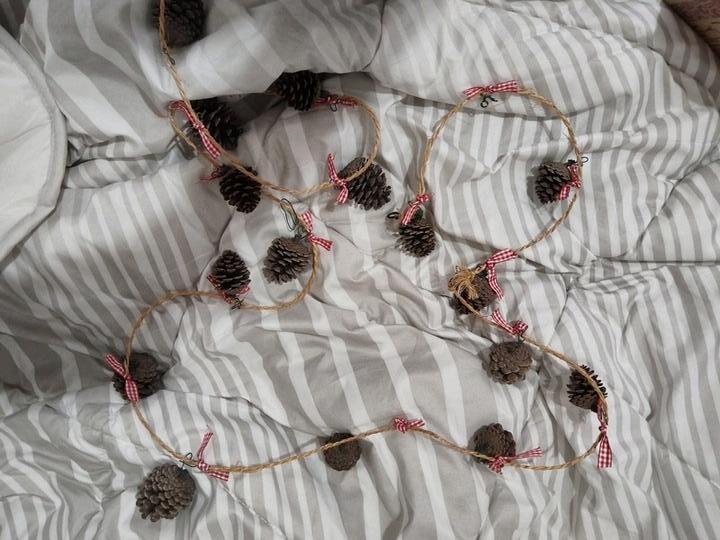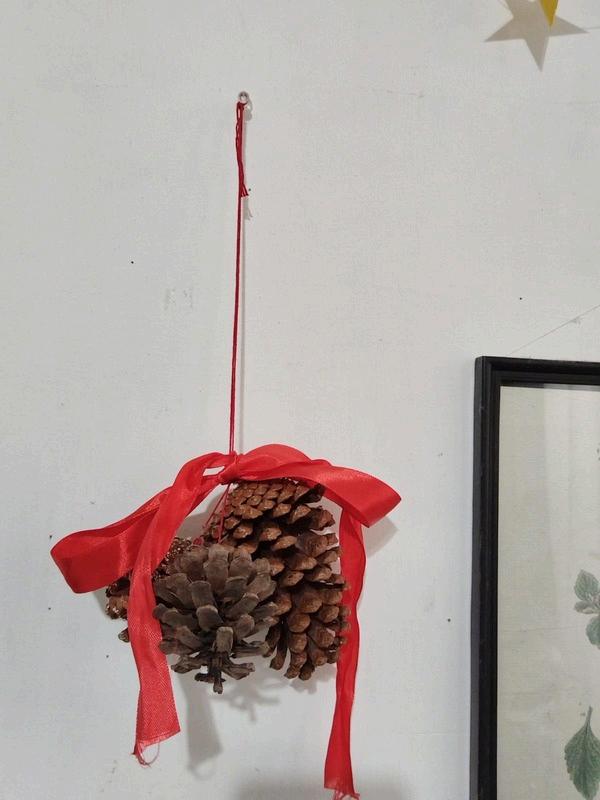 6 esferas cabañaCuenta dentro con piezas de madera navideñas.guía de algodonesguía de estrellasguía de piñasmoños rojos