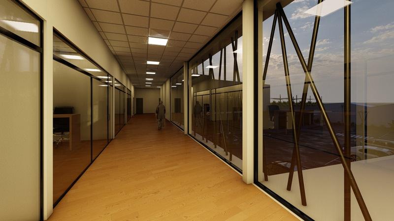 En planta baja, se estableció una distribución con dos pasillos de circulación principal. Estos pasillos parten desde la recepción; uno con dirección hacia el área administrativa y el otro hacia las oficinas de atención.