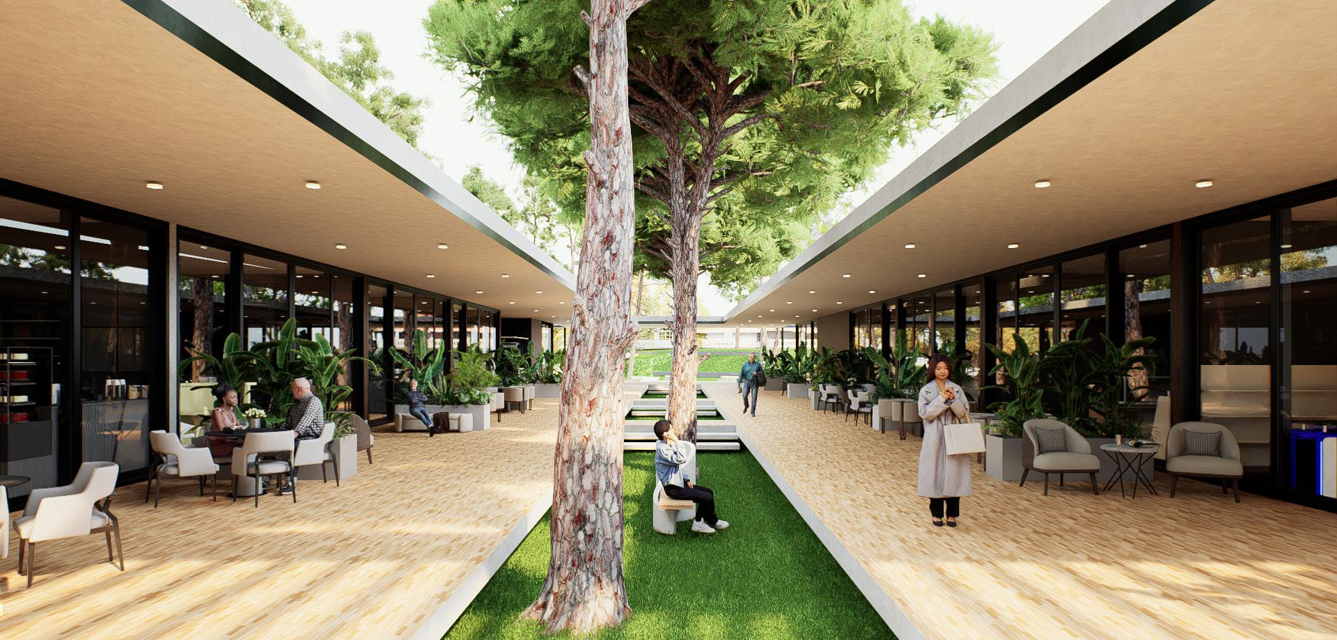 Transition Spaces: Outdoor areas along the pathway invite the community to gather and enjoy the surroundings.