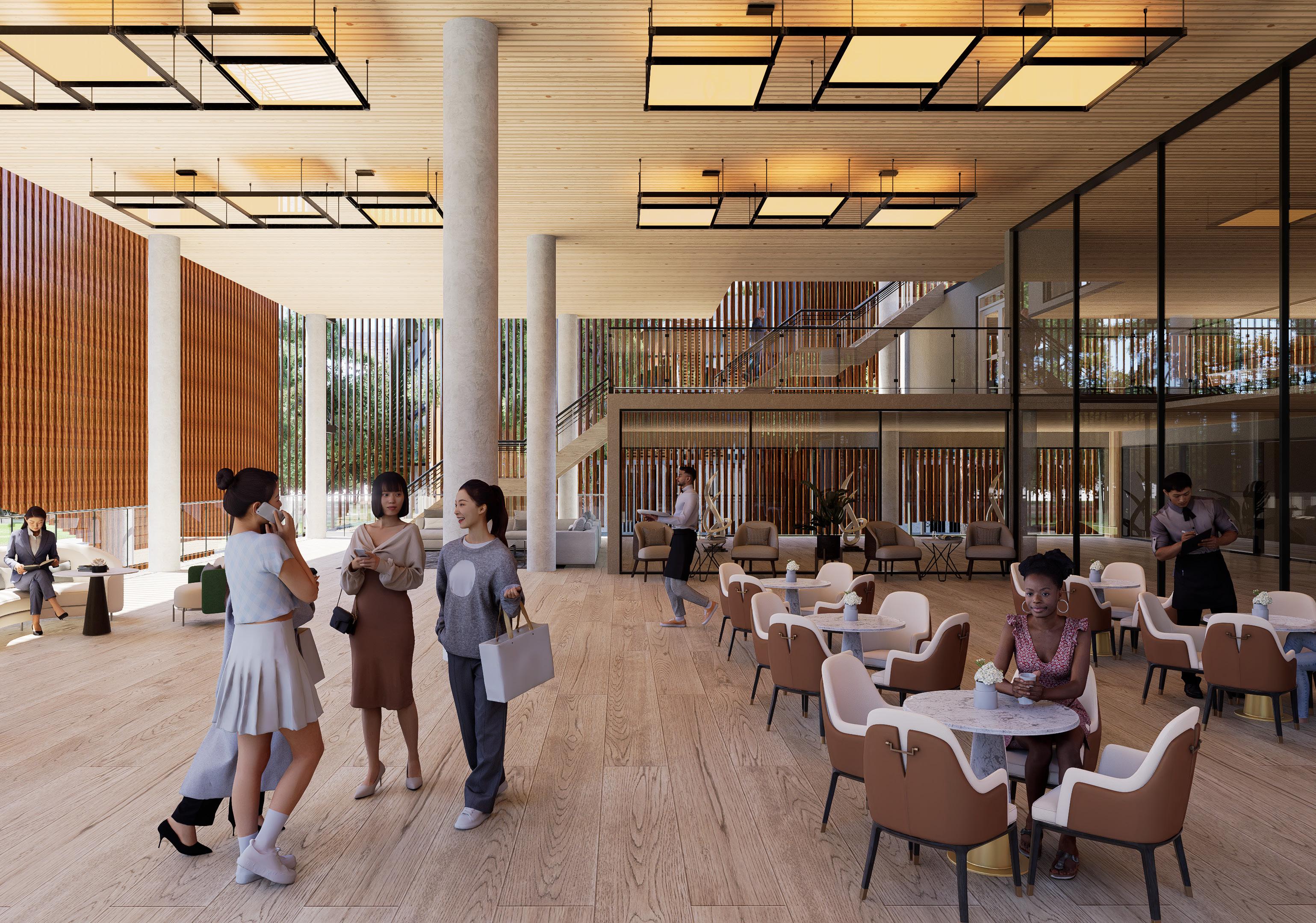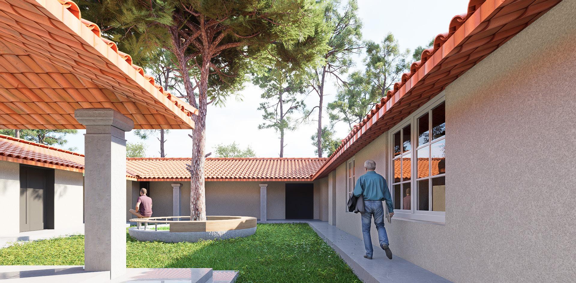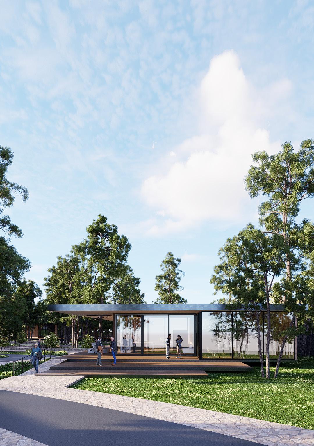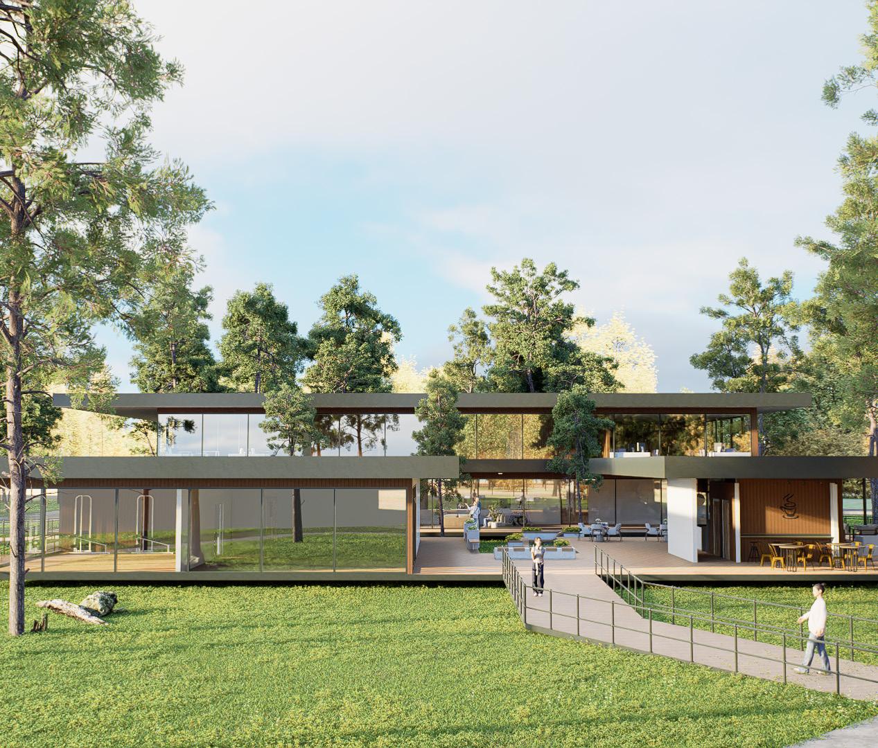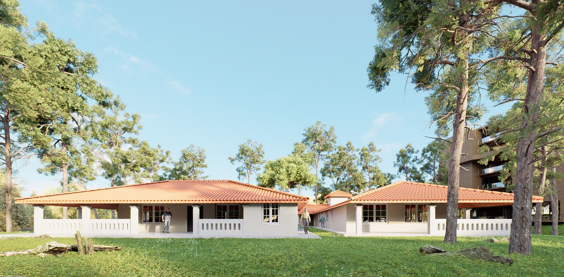 Harmonious Transition: New buildings blend seamlessly with the manor and natural setting, creating a smooth dialogue between old and new.