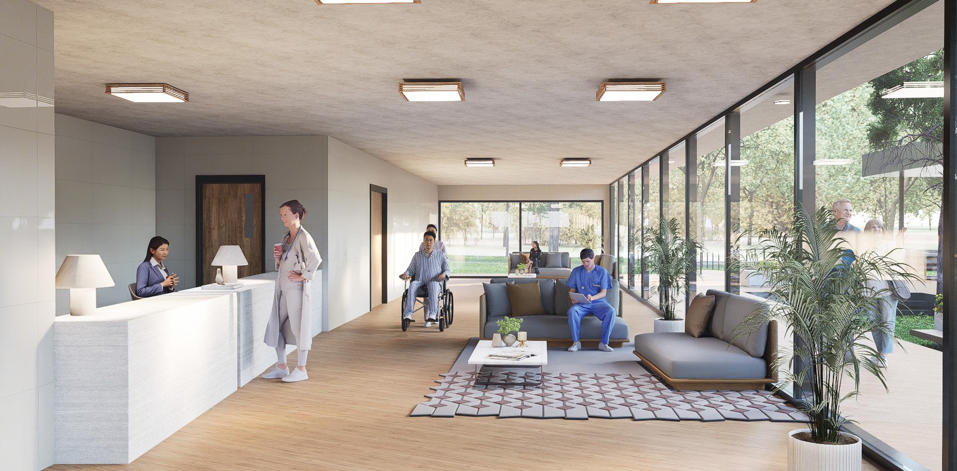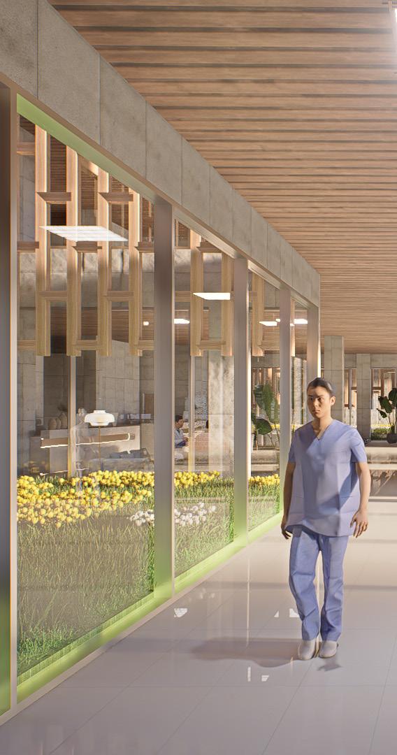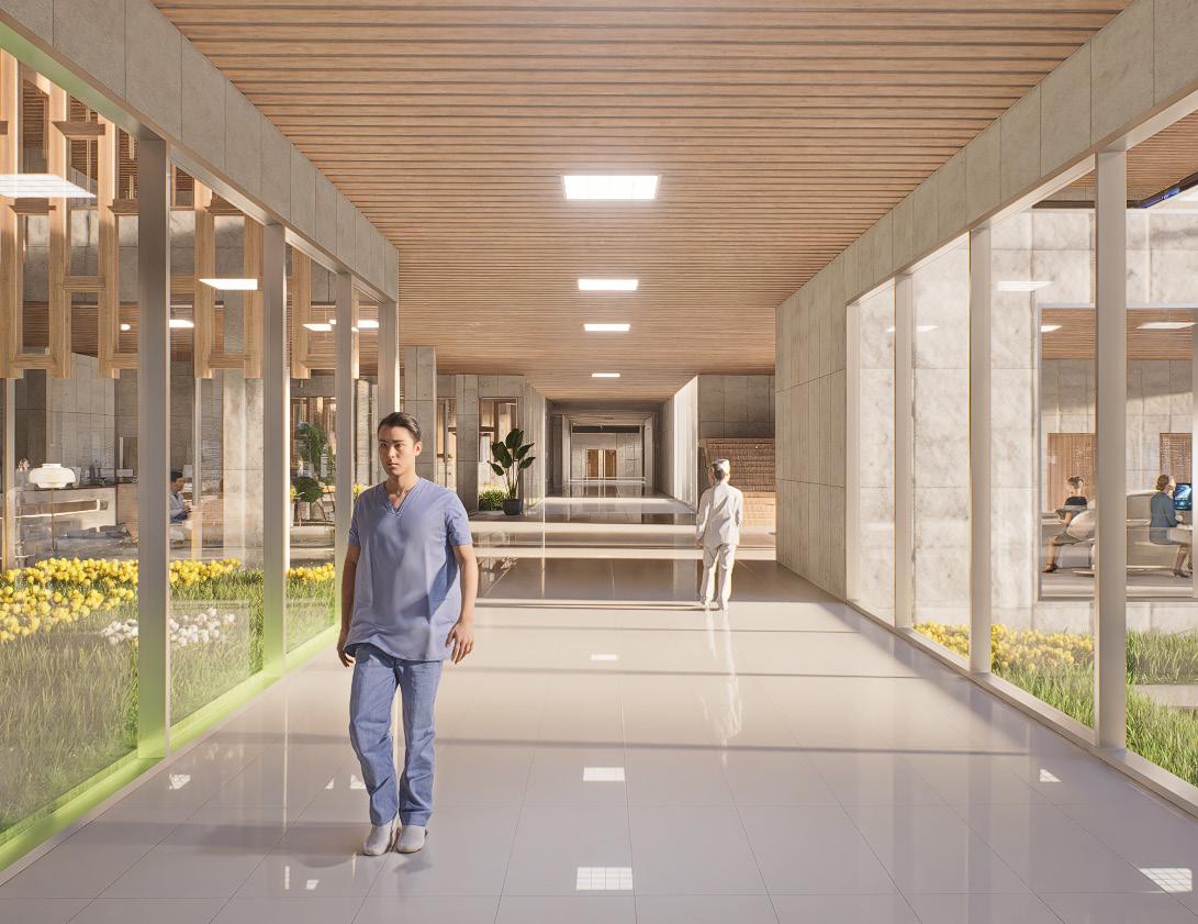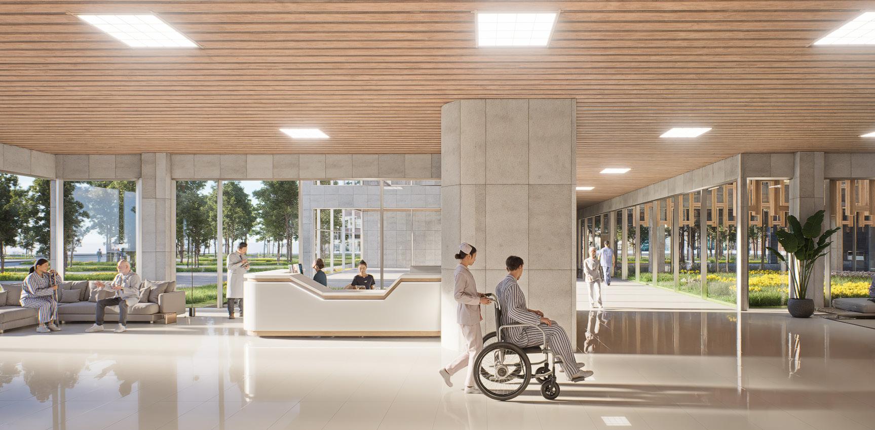 This hospital project emphasizes natural ventilation, daylight, and gathering spaces to enhance the well-being of patients, staff, and visitors. Beyond meeting functional requirements, the design seeks to create a healing environment through contact with nature and areas for rest and reflection.