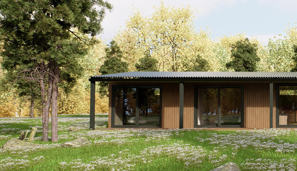 The project consists of a modular house composed of five modules. The construction uses SIP panels (Structural Insulated Panels), a technology that combines two outer layers of OSB (Oriented Strand Board) with an EPS (Expanded Polystyrene) core, providing high structural strength and excellent thermal insulation.