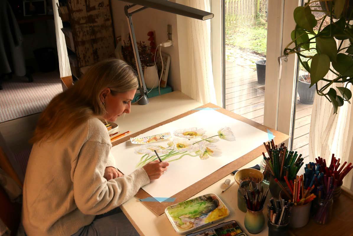 I find my inspiration in my love and admiration of the natural life and the surroundings around me in Hornsherred, where I live with my family and from all the wonderful garden flowers from my own garden. It is my belief that nature can do much more than we give it credit for. With my small floral motives, I want to bring nature’s peace, energy and joy into the home, so that we are reminded of all the beauty that is outside, even if the winter darkness is upon us and the biting cold wind is rushing outside.
