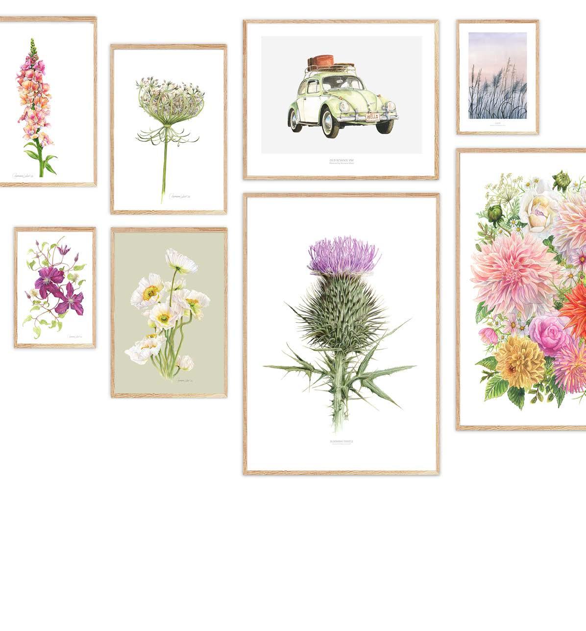In this catalogue you will find fine art posters with botanical illustrations that I have produced and other motives that I have found inspiring. All the illustrations on the products are hand painted with watercolors. Everything you see here has been produced by me from my little studio in Skibby. All my fine art posters, are printed at a Danish printing company.