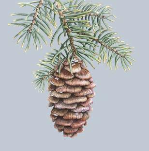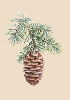Pine Cone on Branch - White BG