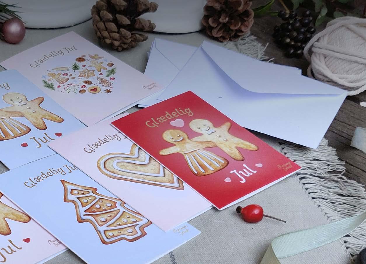 A7 mini size cards folded (7,4x10,5 cm). Printed on 260 g. FSC paper. Each card comes with a white envelope. Cards can be packed in cellofan bag for an additional cost. Painted, designed and produced in Denmark.