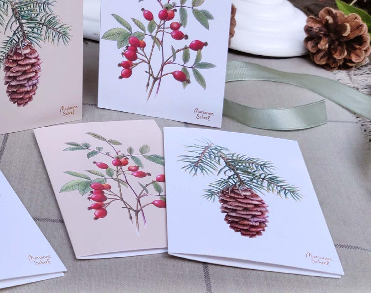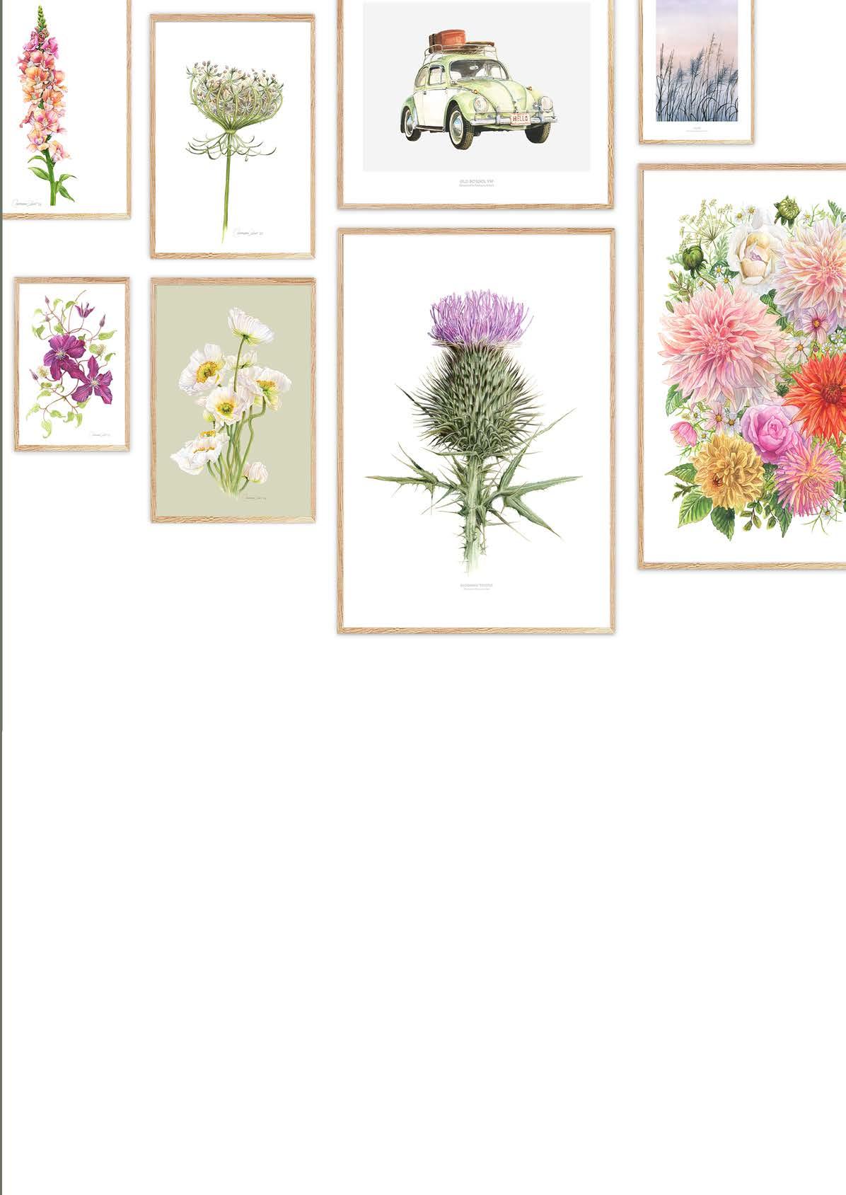 In this catalogue you will find greeting cards and fine art posters with botanical illustrations that I have produced and other motives that I have found inspiring. All the illustrations on the products are hand painted with watercolors and other mixed media. Everything you see here has been produced by me from my little studio in Skibby. Greeting cards and larger fine art posters, are printed at a Danish printing company.