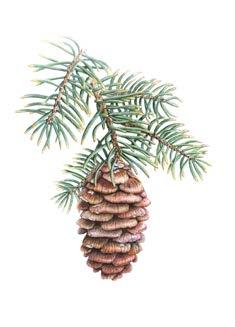 Pine Cone on BranchWhite BG