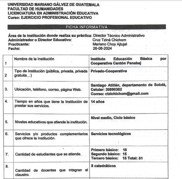 Administrador o Director Educativo: Cruz Tziná Chichom