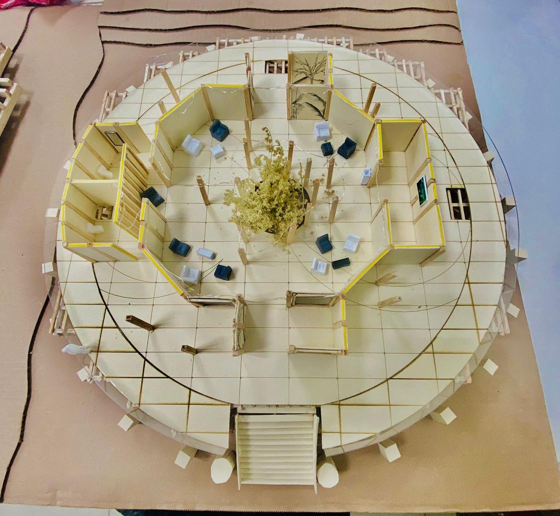 El proyecto se realizó con madera balsa la cual al tener el concepto de la arquitectura japonesa se decidió dejar el modelo sin ningún tipo de acabado extra. Con el fin de dejar a la madera que luzca y siga teniendo la esencia de minimalizm, apegado al concepto de arquitectura efímera.