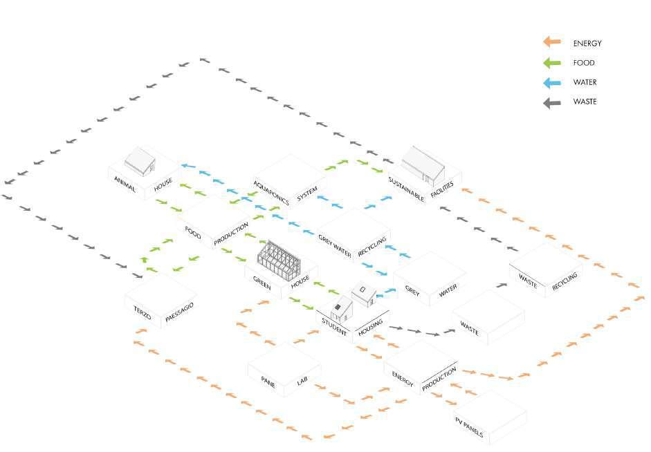 The project was oriented towards the design of a NZEN, Nearly Zero Energy Neighborhood in an existing settlement, in line with a sustainable urban densification approach. The aim was to create a single publix building and a cluster of smaller housing cluster that can accommodate residences and services for a limited number of students, in close relationship with an existing urban fabric in the village of Chiaravalle, south of Milan.