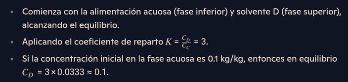 Unacolumnadeextraccióntieneunaalimentaciónacuosade1kgdesoluciónquecontiene0.1 kgdecompuestoCyusa1kgdesolventeDporetapa,conuncoeficientederepartoK=3