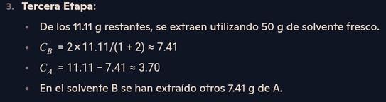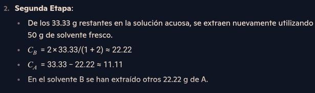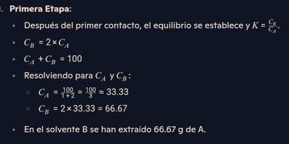 Laalimentaciónseponeencontactoconelsolventefresco,yalequilibrio����=2×����. Sisesuponequelamismamasasedistribuye,entonceselsolventecontendráunamayorconcentración deA.