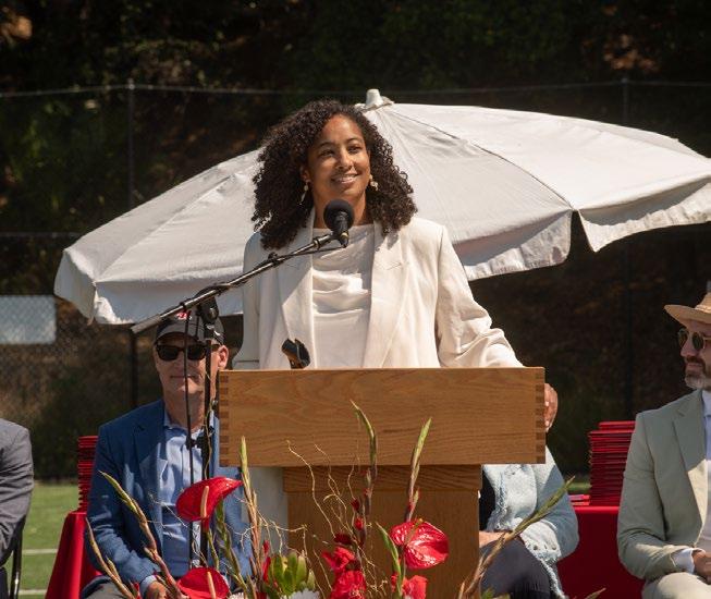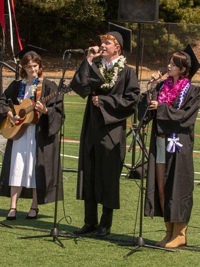 Compelling expression shows up in many forms, and each year's speeches and performances reflect the distinct voice of that graduating class. These moments may be deeply personal, but they also speak to Marin Academy's mission—encouraging students to lead with integrity, empathy, and imagination. Seniors are trusted to speak from the heart, knowing that this community values vulnerability, clarity, and care. Within clear and respectful boundaries, students are empowered to share their truth—and in doing so, strengthen the community that has shaped them.