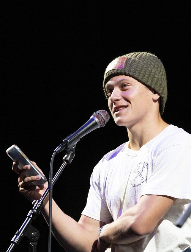 Not every story is spoken at the podium. Some are danced, played, or sung on stage. Miles S. '25 has been breakdancing since he was 8 years old, but he was a bit out of practice and hesitant to put himself out there on the Performing Arts Center stage. In a true example of the MA community spirit, Matthieu G. '25 began to practice with him at a local studio, and they appeared on stage together. Miles' advisor, Frank Cassano, showed his support as well by joining them for the finale of this powerful Senior Arts Performance.