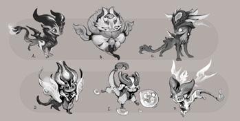 Diferentes posibles diseños en la creación de Smolder. El primero fue el que después desarrollarían.