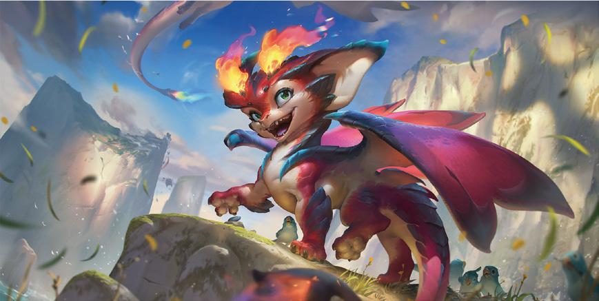 El artista conceptual Oussama ‘Riot Whiteleyth’ Agazzoum hizo algunas exploraciones de arte conceptual intensamente adorables para averiguar exactamente el tipo de mono que debería ser Smolder. Para el trasfondo de Smolder, el equipo se fijó en una parte más misteriosa de Runaterra: Camavor. Por suerte para el equipo de campeones, Legends of Runeterra ya tenía algo de inspiración preparada. A pesar de sus orígenes camavoranos, Smolder tiene algunas cosas en común con Shyvana y Aurelion Sol: al fin y al cabo, todos son dragones.