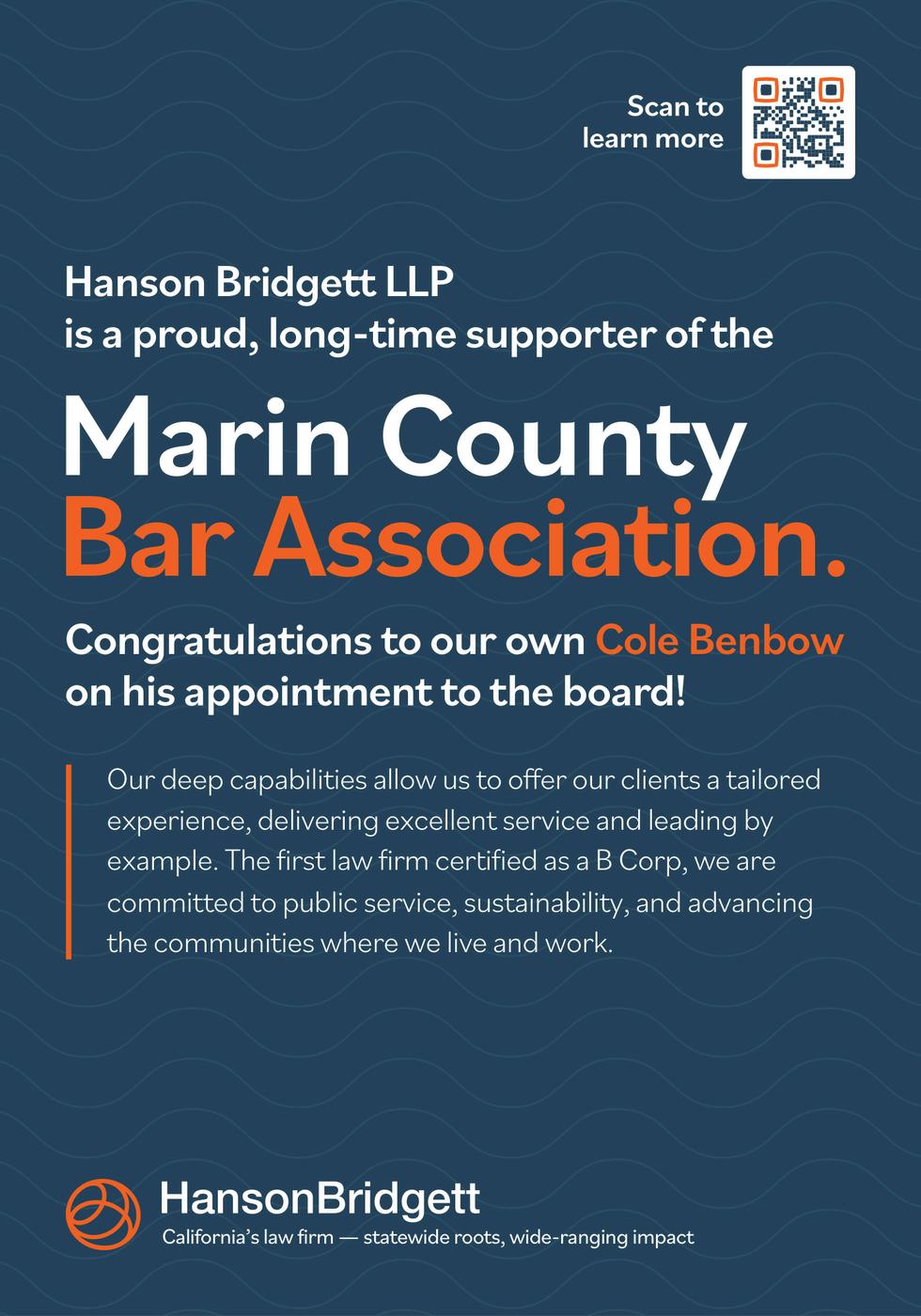 These are all things we’re committed to doing this year and in the years ahead. We will continue to expand our program offerings and build community among the legal community here in our wonderful county of Marin. Stay tuned on this.