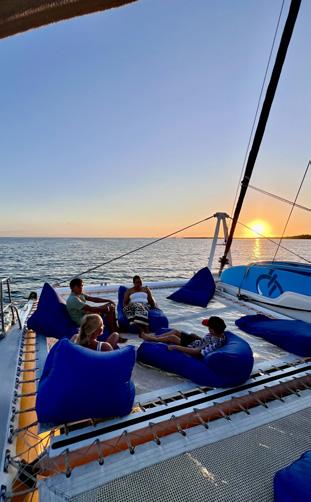 • An array of relaxed seating options onboard, including booths, day beds, and bean bags