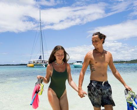 As SABRE is a sailing catamaran, the journey itself is all part of the fun with SABRE sailing from destination to destination allowing guests to feel the thrill of being under sail while enjoying the expansive views across the Mamanuca Islands. A day charter includes a stop off at a private island, South Sea Sands, with spectacular snorkelling spots to allow guests to disembark and swim/ snorkel, should they choose to. Snorkelling gear is provided along with stand up paddle boards and flotation devices for those who want/need them.
