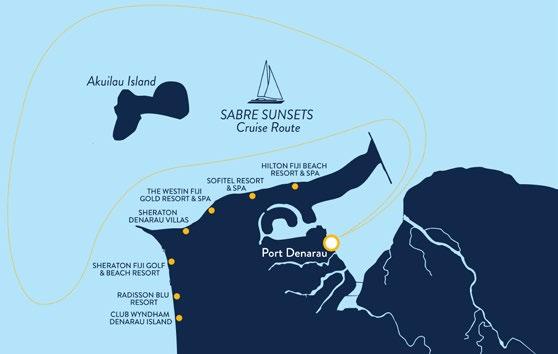 SABRE departs from and returns to Port Denarau, which is only 30 minutes from Nadi International Airport and is located close to a range of resorts and hotels. This makes the South Sea Sailing day trip, sunset, or dinner cruise a convenient and hassle-free option for groups.