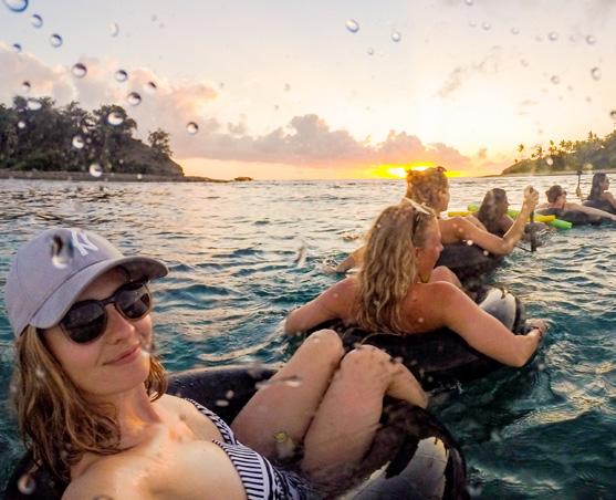SUNSET TUBE CRUISE Chill out with a cool drink in hand, floating in the water, in a tube, or on the boat, watching one of Fiji’s famous sunsets. A spectacular end to the day.