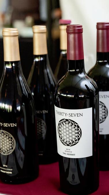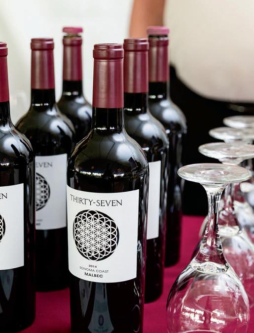 The Miller House allows guests to enjoy a seamless indoor-outdoor experience on the Napa Valley floor no matter what time of year. The 2,300-square-foot structure, with walls of floor-toceiling sliding glass doors, houses custom-made recycled ash wood tables with bold bases, large statement mirrors, artful light fixtures and an inviting lounge area with cognac colored leather sofas around a central fireplace. Each element was thoughtfully selected by Leslie alongside Napa-based interior designer, Robin Beck of Hawkins Interiors to complete the space. They combined this contemporary interior with an additional 1,100 square feet of exterior covered seating for tastings and private and winery-hosted events, where guests can be at one with the serene landscape of the valley.