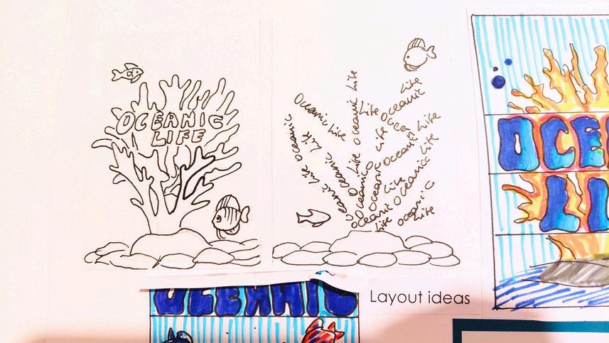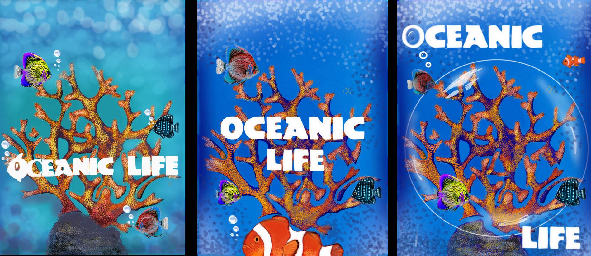 This outcome develops a Marineinspiredvisualconcept, exploring compositions, scales, and layout variation. Bold colours and clear typography creating contrast and focus, while circular elements suggest the experience of observing underwater life.