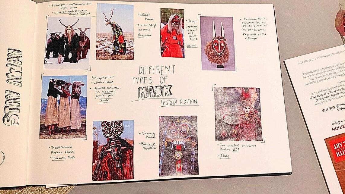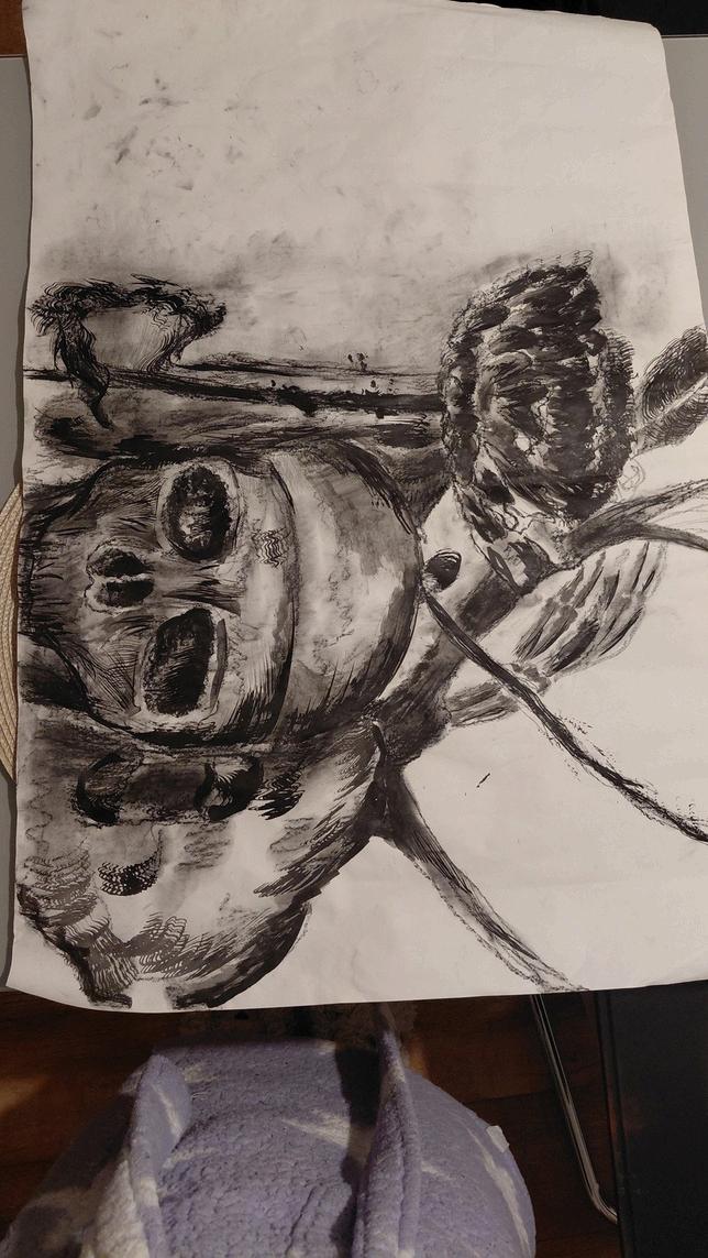 I created these two drawings and incorporated them into my mask design, using them as feathers elements that contribute to the overall structure and visual detail of the piece
