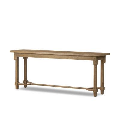 An antique-inspired console table of worn oak features natural knots and graining for a storied look with character. A design collaboration by Amber Lewis and Four Hands. This item has limited online distribution and may not be sold on websites without prior approval. Visit the FAQ page in our Help Center for more details.