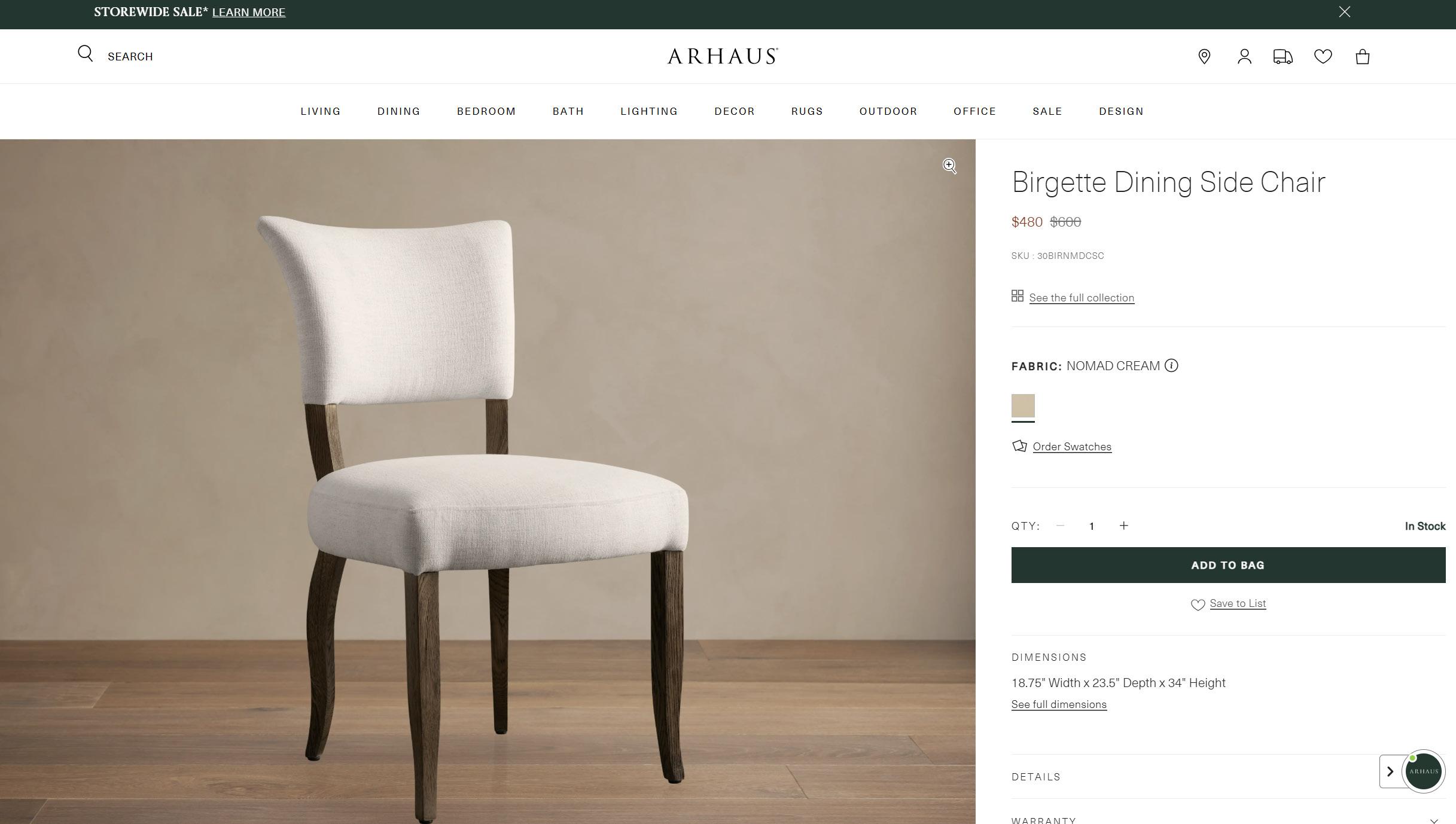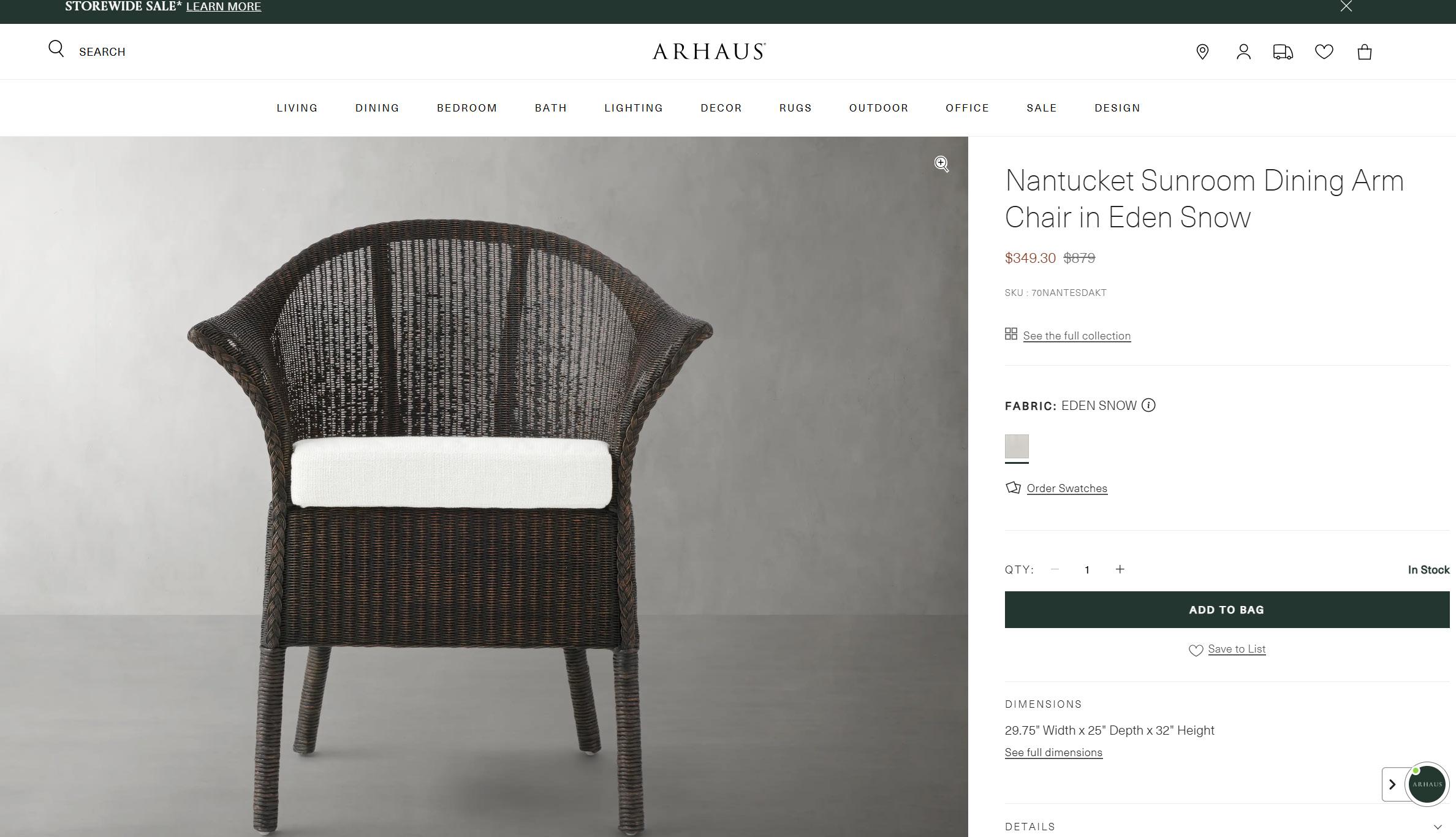 18. ARHAUS-NANTUCKET SUNROOM DINING CHAIR- $1,054