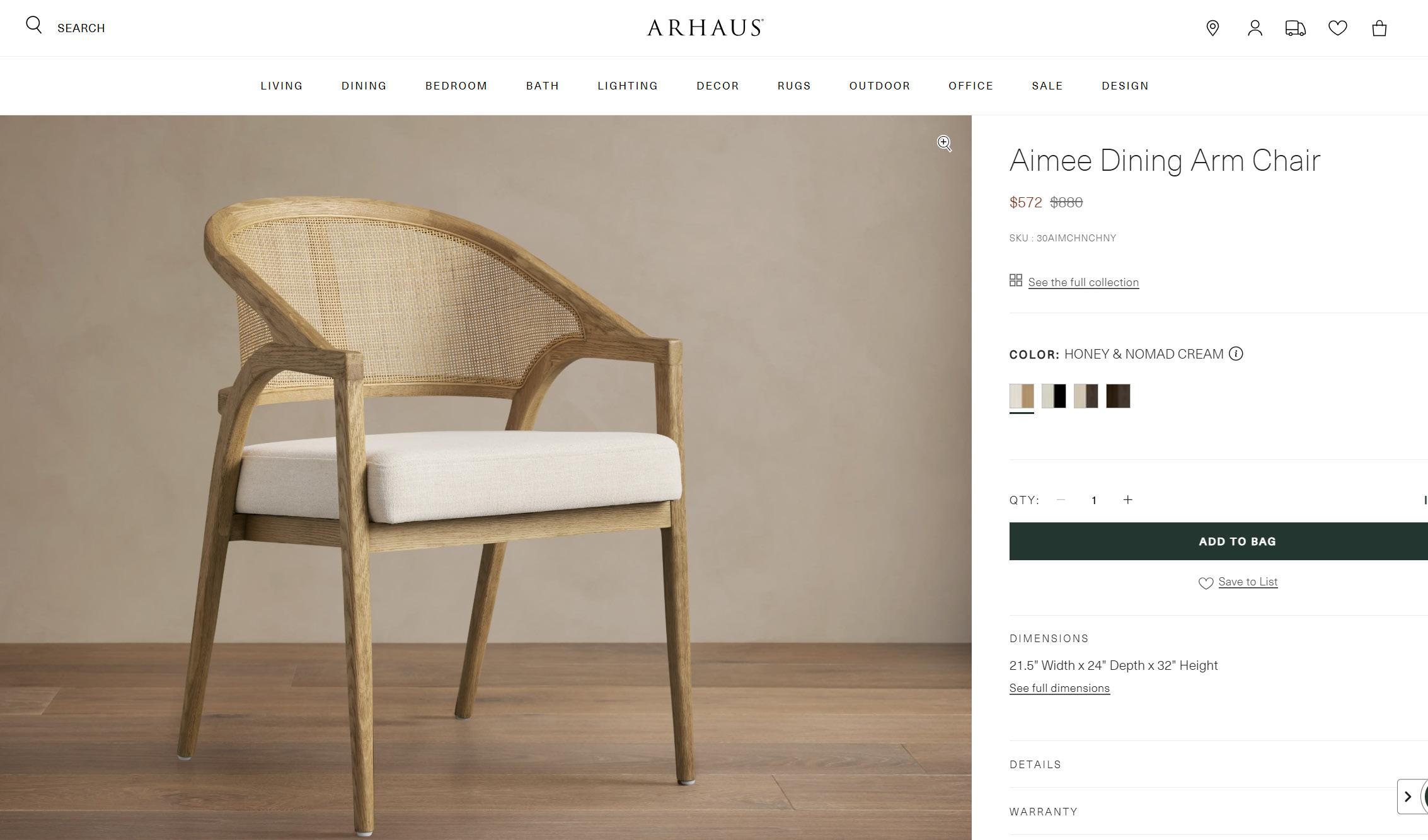 21. ARHAUS-AIMEE DINING CHAIR-$1,056