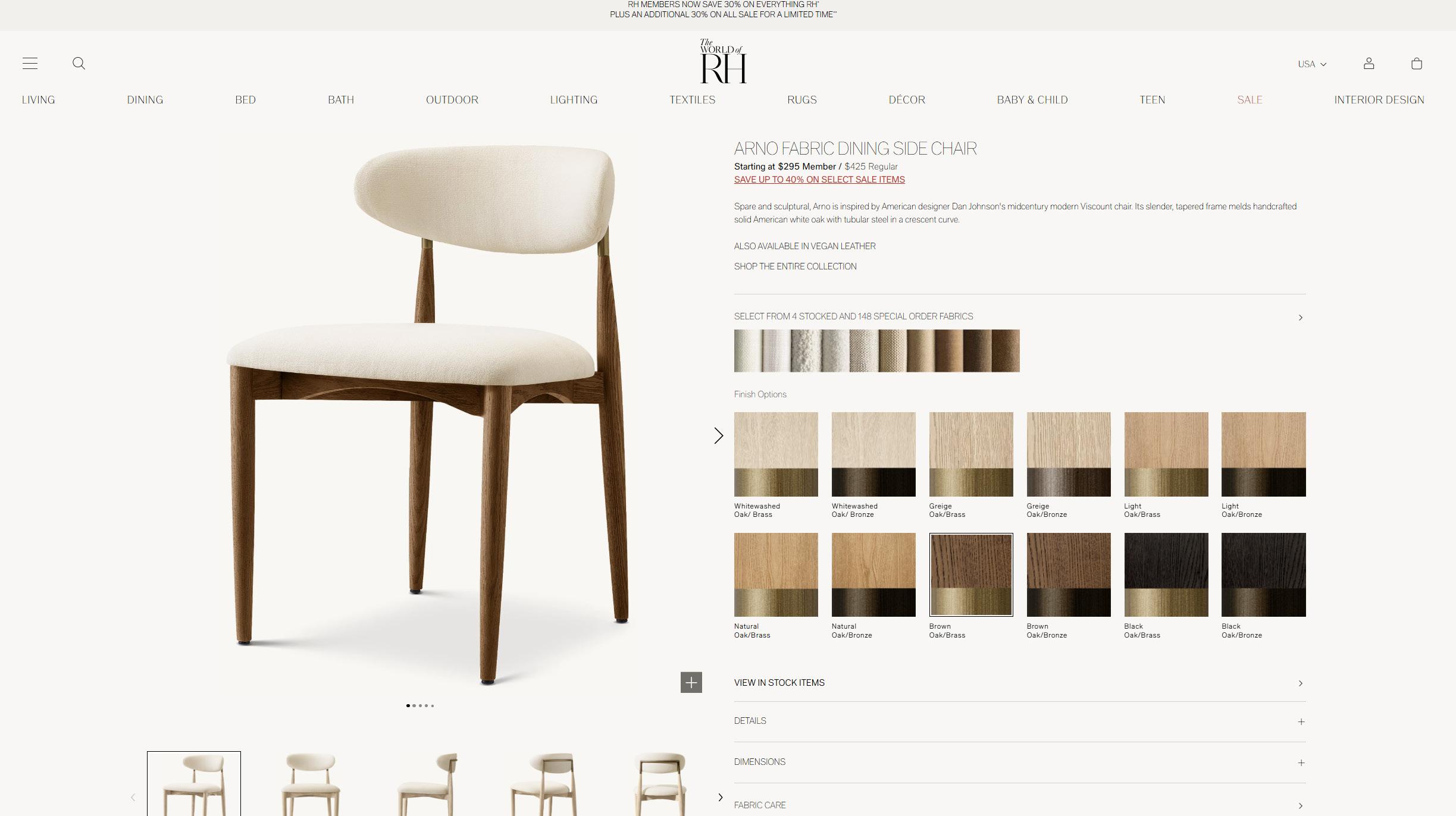 8. RH-ARNO FABRIC DINING SIDE CHAIR -(Natural Performance Linen Weave with Brown Oak Brass Finish)- $354