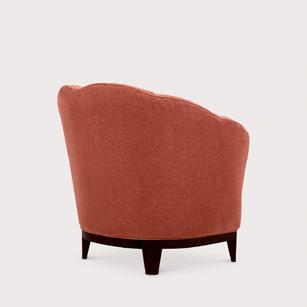 Designed to be centered in the middle of a room, the Heather Chair is curved for comfort while at the same time maintaining its clean, structural lines. This bespoke piece has a large depth, perfect to accompany with a scatter cushions or to curl up in.
