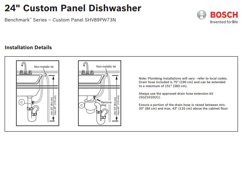 BOSCH 24" CUSTOM PANEL DISHWASHER