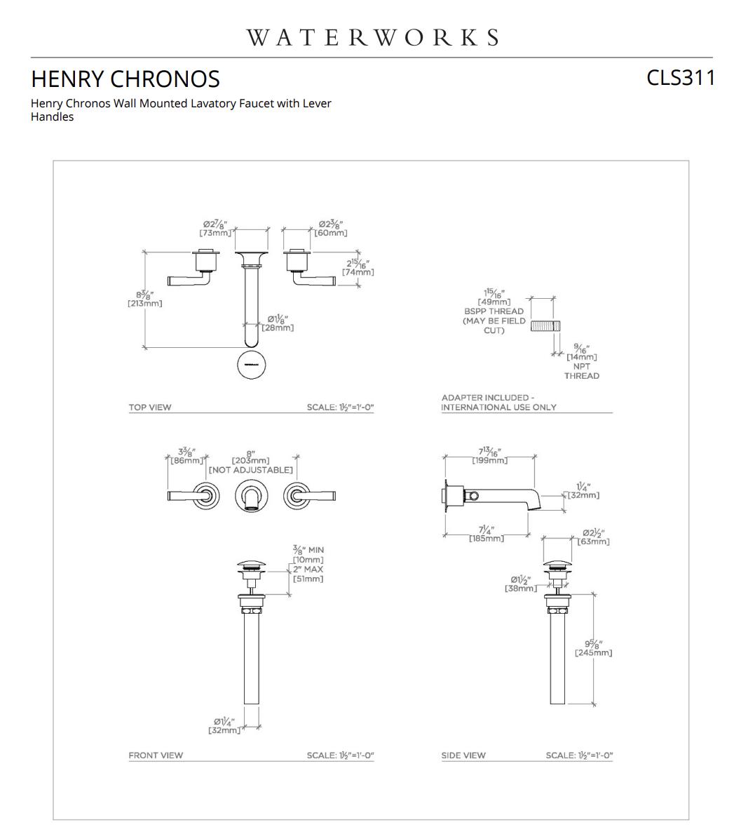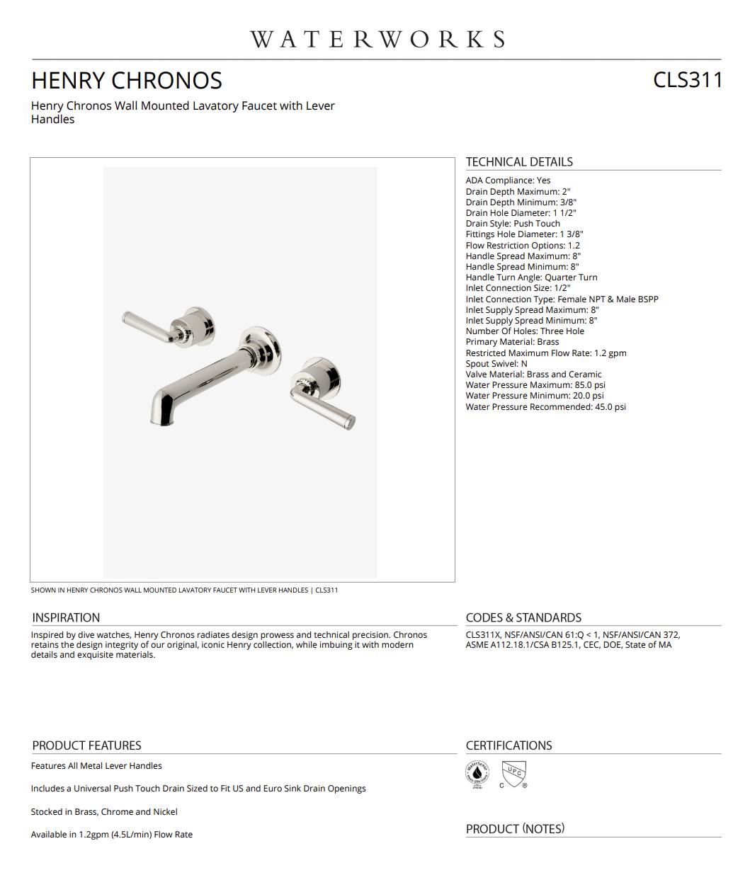 CLS311 HENRY CHRONOS WALL MOUNTED LAVATORY FAUCET WITH LEVER HANDLES IN BURNISHED NICKEL, 1.2GPM (4.5 L/MIN)