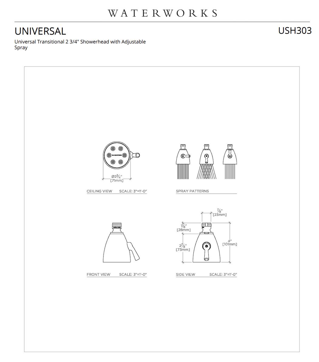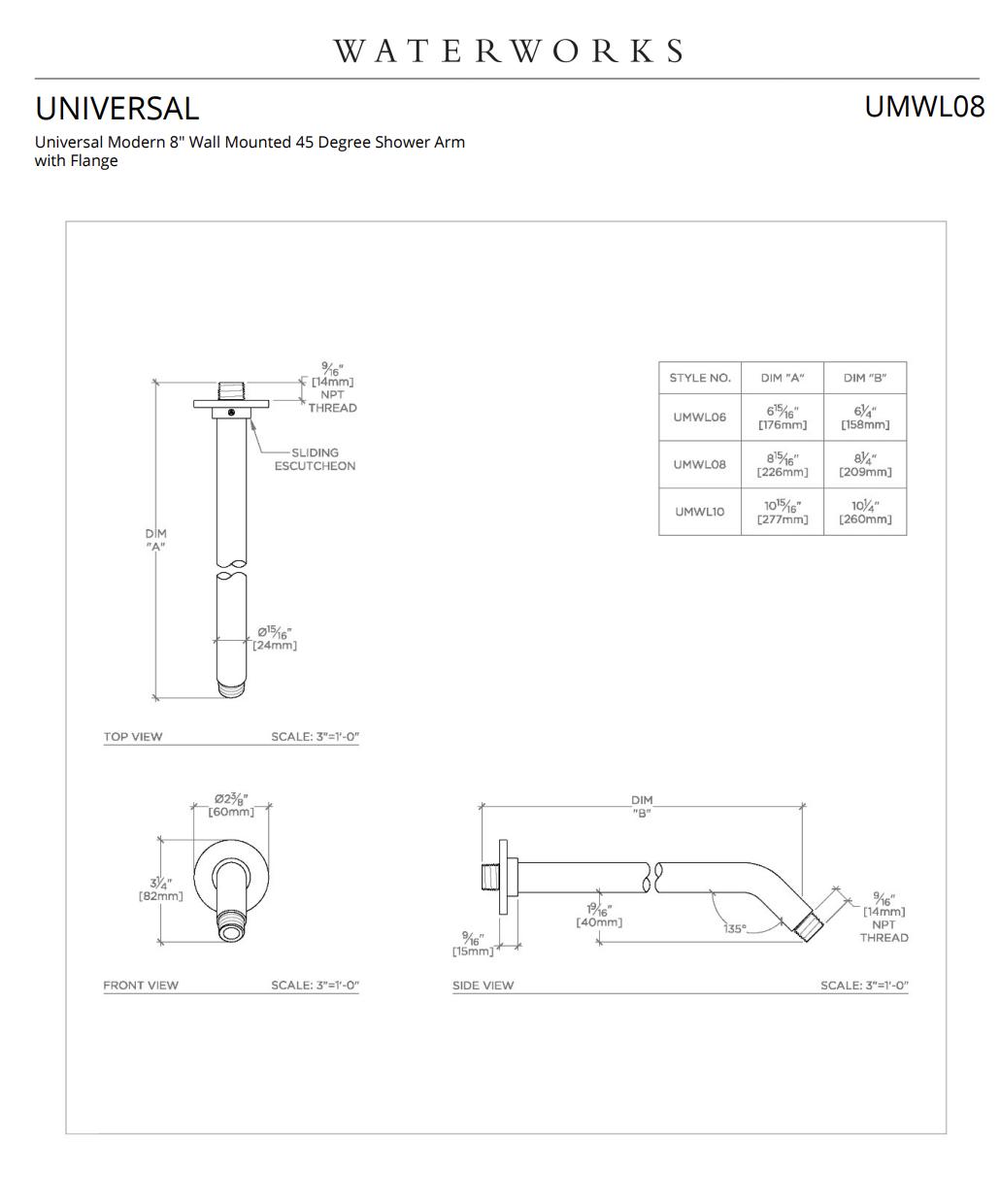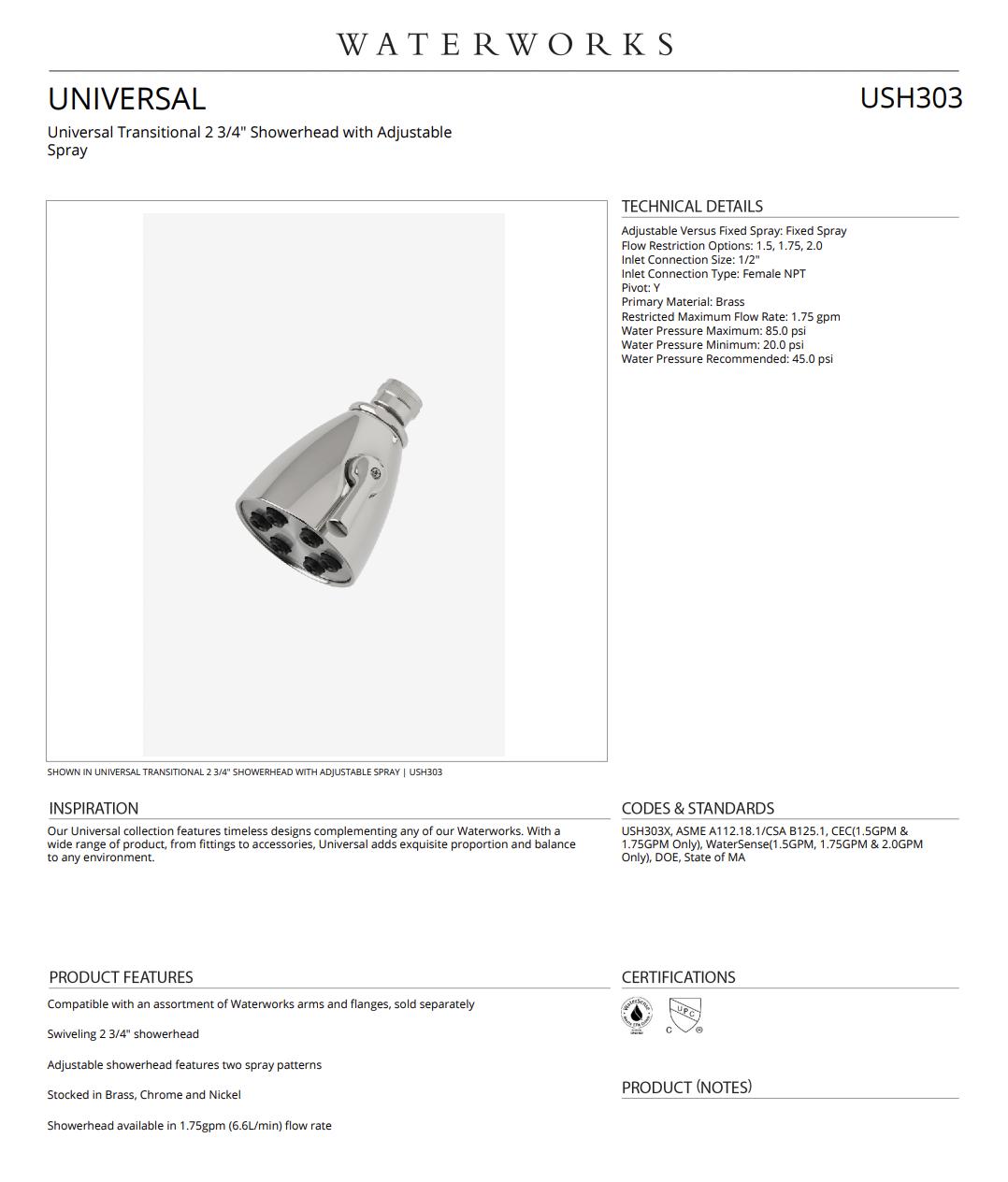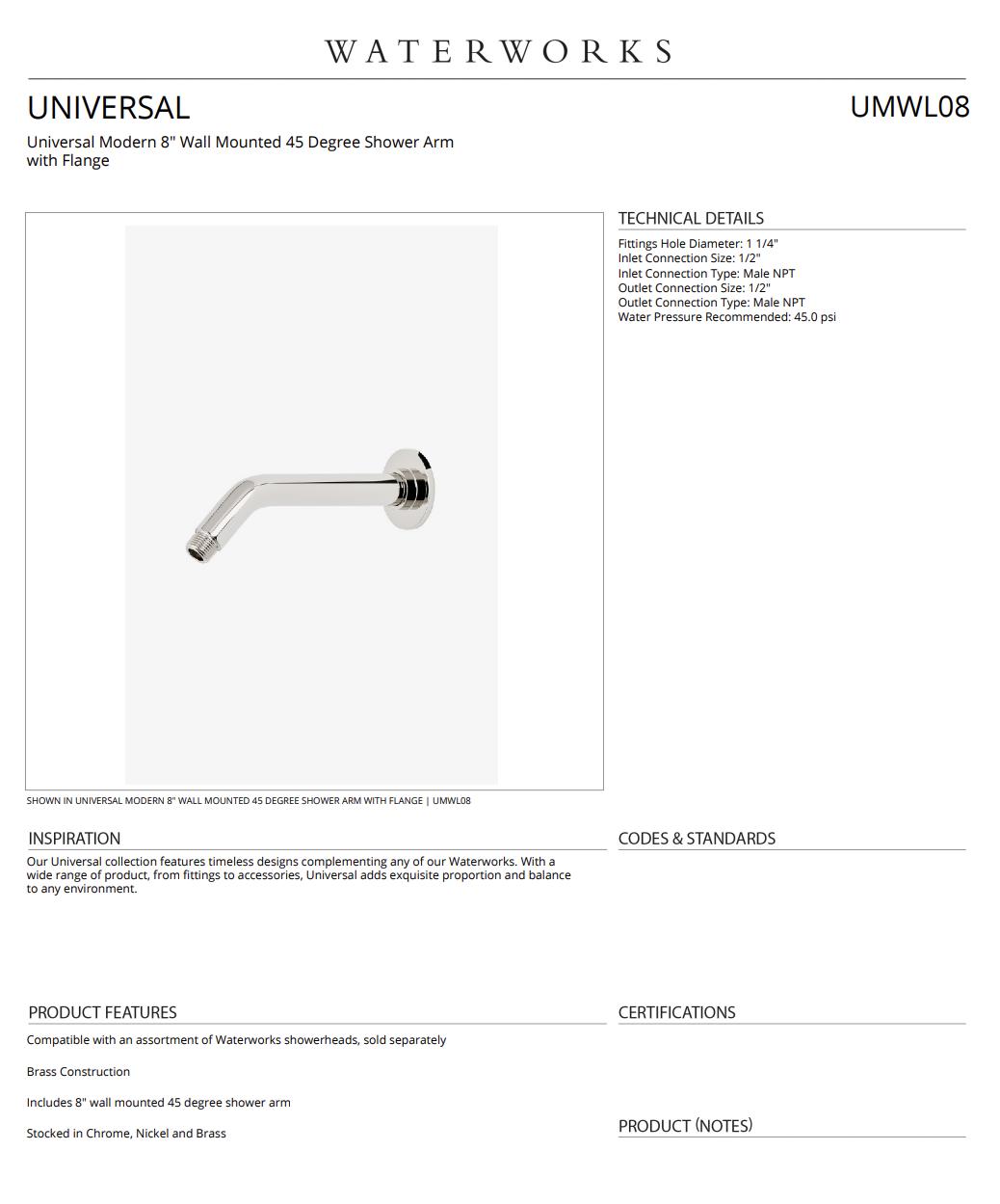 HIGHGATE 2 3/4" SHOWERHEAD WITH ADJUSTABLE SPRAY WITH 8" WALL MOUNTED 45 DEGREE