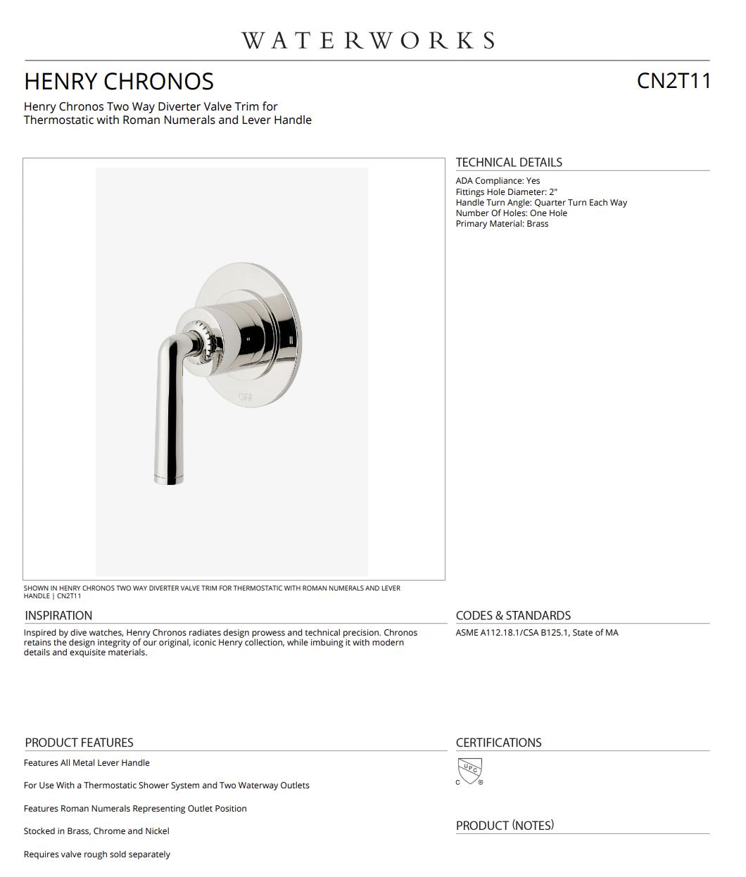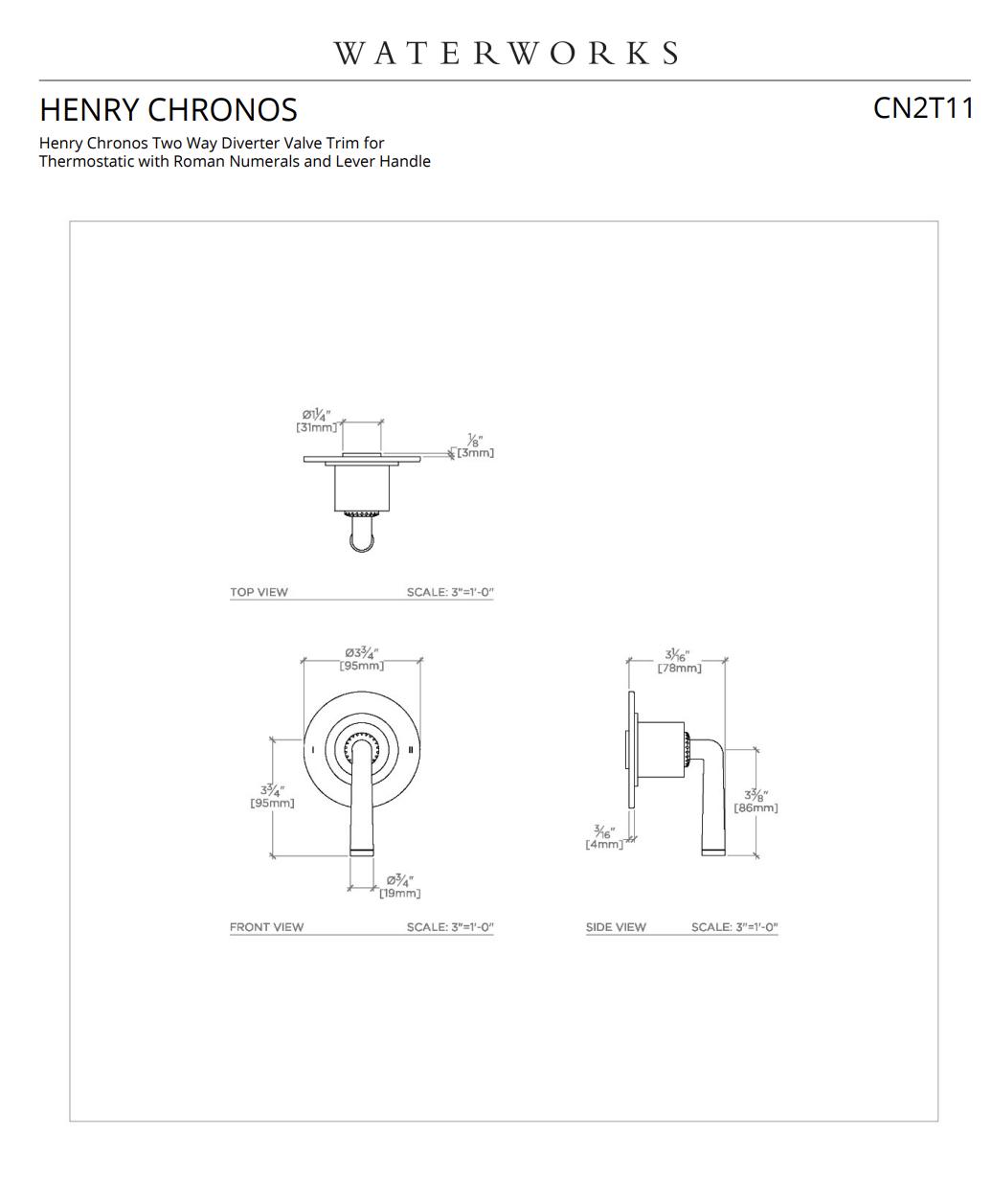 HENRY CHRONOS TWO WAY DIVERTER VALVE TRIM FOR THERMOSTATIC WITH ROMAN NUMERALS AND LEVER HANDLE IN BURNISHED NICKEL