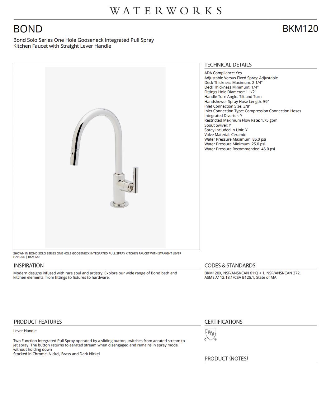 BOND SOLO SERIES ONE HOLE GOOSENECK INTEGRATED PULL SPRAY KITCHEN FAUCET WITH STRAIGHT LEVER HANDLE NICKEL