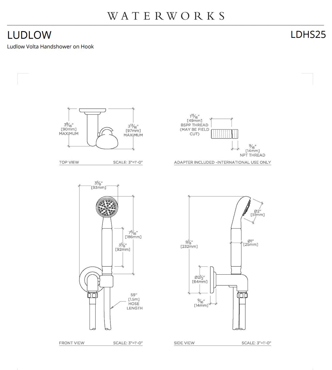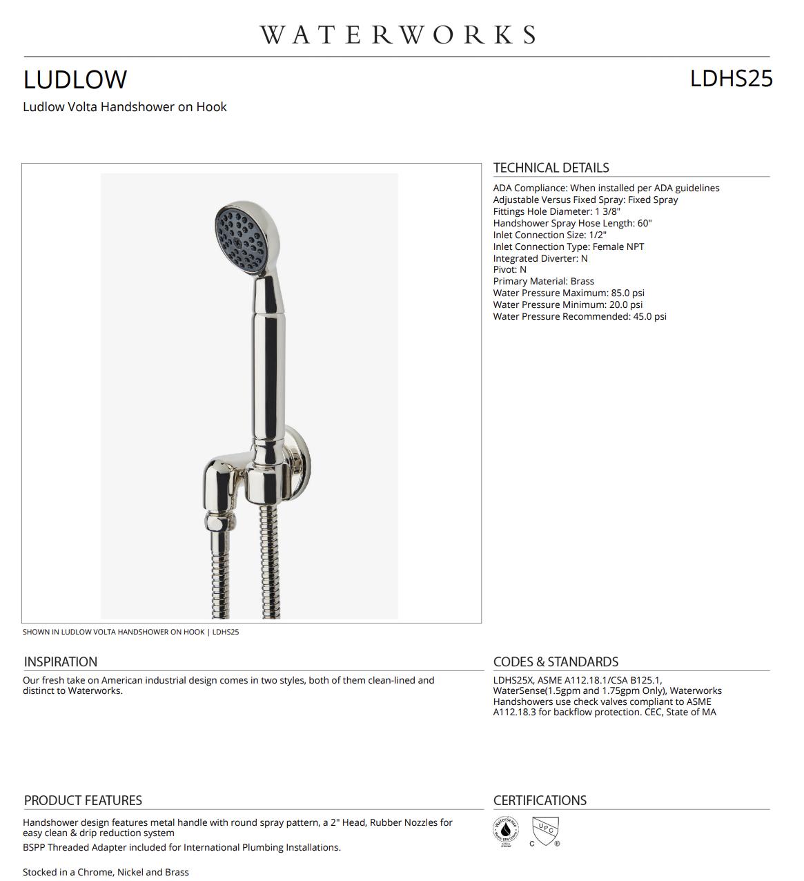 LUDLOW VOLTA HANDSHOWER ON HOOK IN NICKEL, 1.75GPM