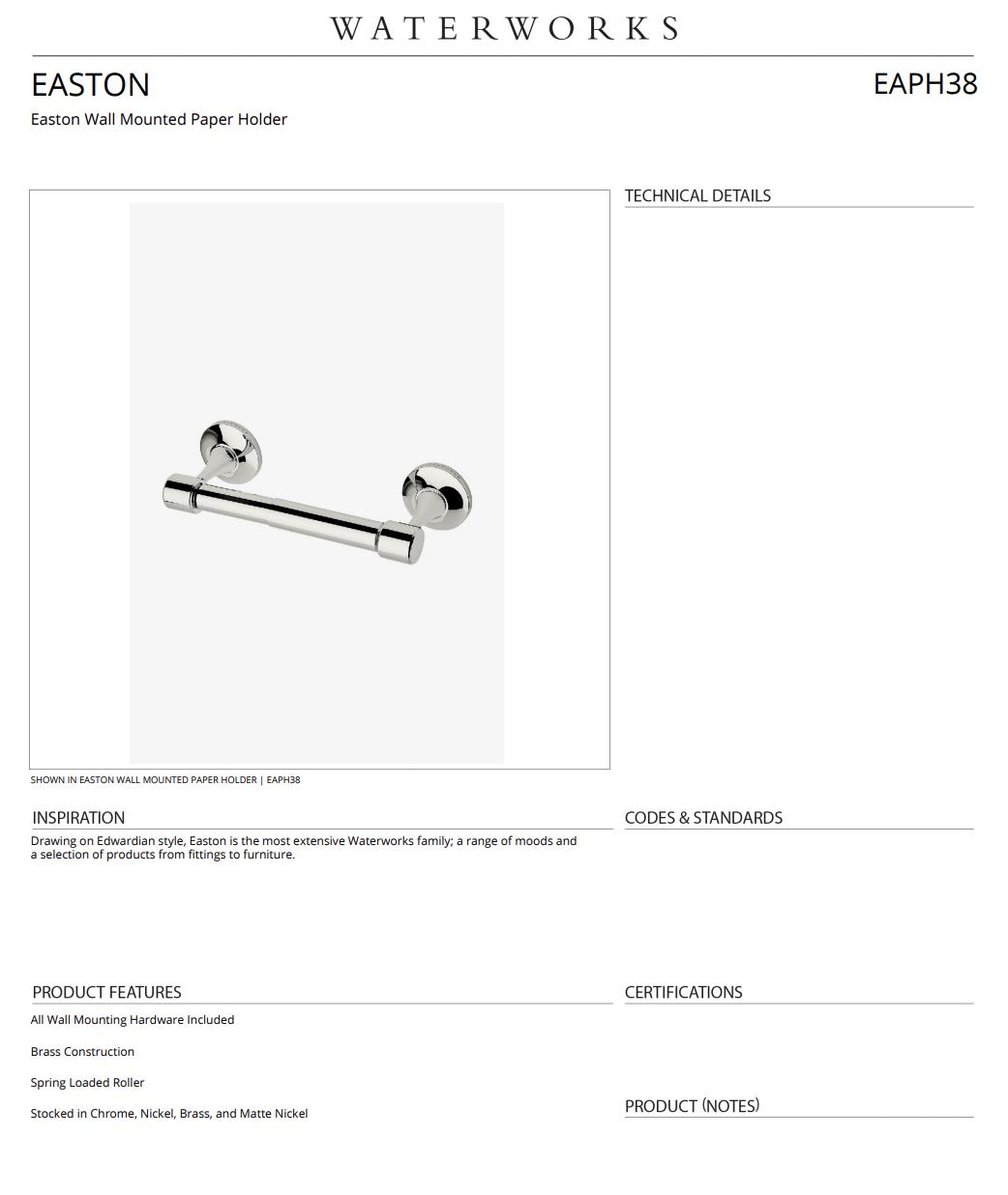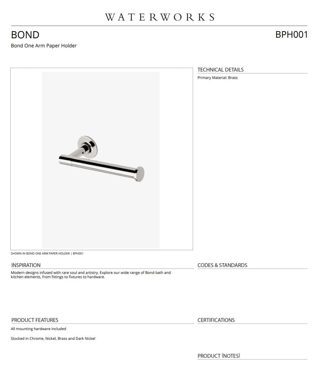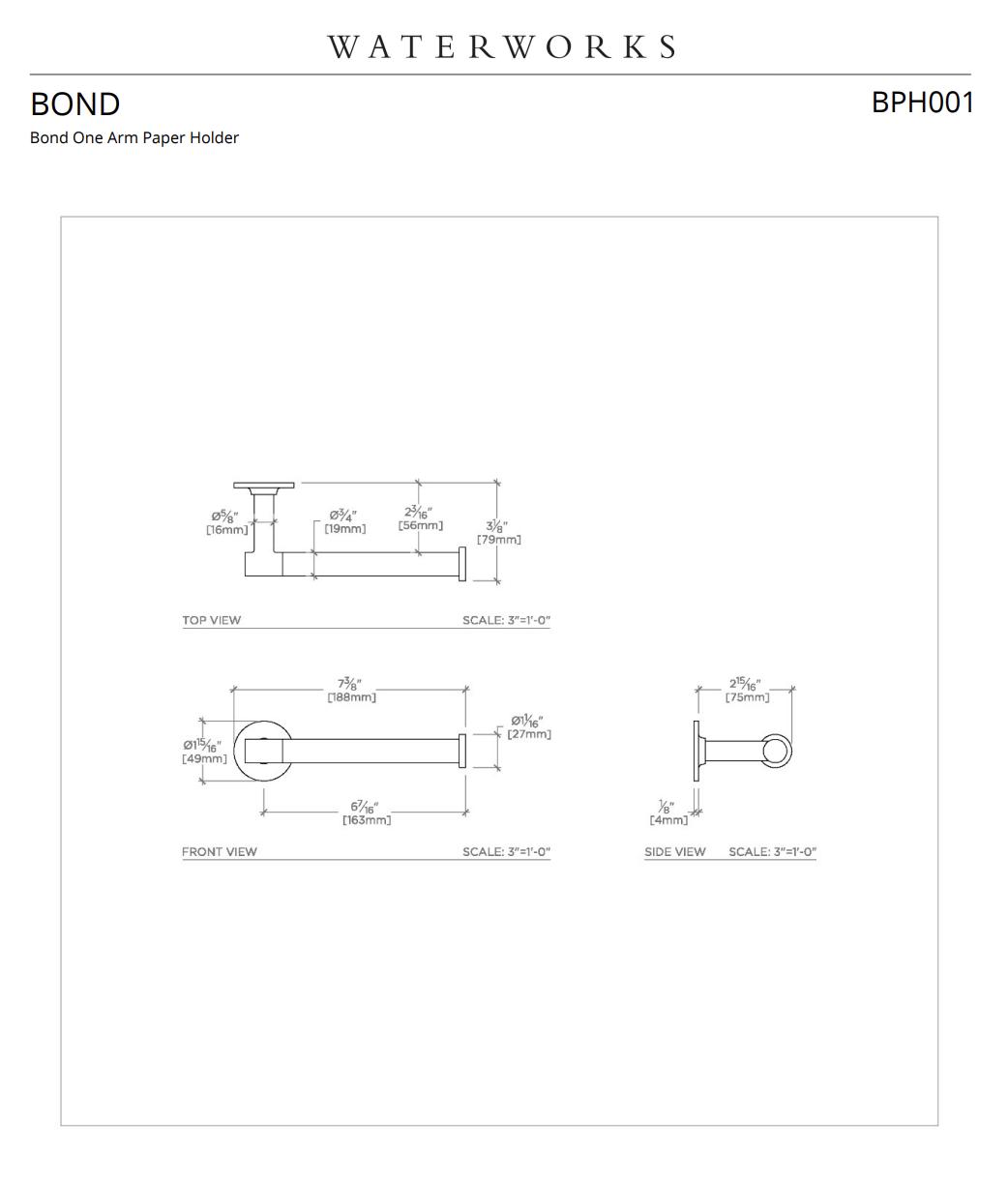 WATERWORKS BOND ONE ARM PAPER HOLDER